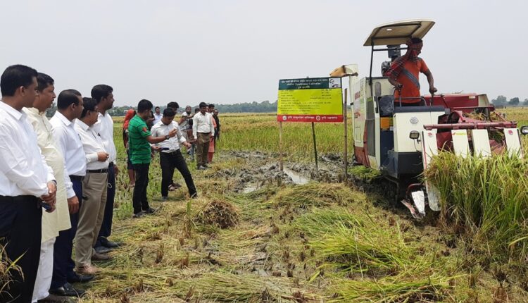 আলমডাঙ্গায় হারভেস্টার মেশিনের সাহায্যে ধান কাটা উদ্বোধনকালে জেলা প্রশাসক