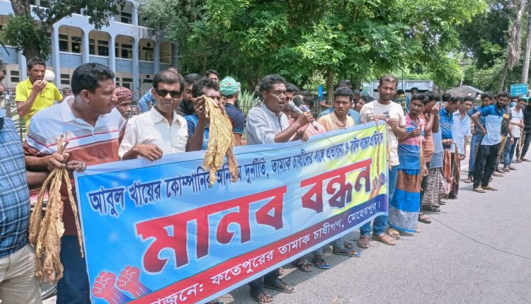 আবুল খায়ের কোম্পানির অনিয়ম ও প্রতারণার অভিযোগে মেহেরপুরে তামাক চাষিদের মানববন্ধন
