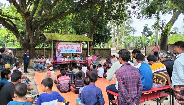 গত পরশু রোববার বিকেল ৫টায় উপজেলার ফরাশপুর গ্রামে স্থানীয় ইউপি সদস্য হাফিজুর রহমান ঝন্টুর সভাপতিত্বে মাদক বিরোধী উঠোন বৈঠক অনুষ্ঠিত হয়। বৈঠকে ফরাশপুর, শালিখা, বারইপাড়া ও মস্তবাপুর গ্রামের কয়েকশ’ মানুষ অংশ নেয়। উঠোন বৈঠকে শালিখা গ্রামের আকিদুল ইসলাম, পঙ্কজ দাস, ঈমান আলী, ফরাশপুর গ্রামের মুক্তিযোদ্ধা জয়নাল বিশ^াস, ফরহাদ আহমেদ, দাউদ আলী বিশ^াস, বারইপাড়া গ্রামের আব্দুল খালেক, মোস্তবাপুর গ্রামের আব্দুল ওয়াদুদসহ প্রায় ১০জন বক্তব্য রাখেন। বক্তারা অভিযোগ করে বলেন, গ্রামগুলোতে প্রকাশ্যে মাদক সেবন ও ক্রয় বিক্রয় হলেও প্রশাসন কার্যকর কোনো পদক্ষেপ নেয় না। যার কারণে মাদক আসক্তের সংখ্যা দিন দিন বাড়ছে। যদি এখনি মাদকের বিস্তার রোধ করা না যায়, তবে পরিস্থিতি আরও ভয়াবহ হবে। সে সময় বক্তারা মাদকের বিরুদ্ধে কঠোর হওয়ার জন্য প্রশাসনের প্রতি আহ্বান জানিয়ে মাদকের বিস্তার রোধে সবাই সচেতন হওয়ার দৃঢ় সংকল্প ব্যক্ত করেন। উঠান বৈঠক শেষে ৪ গ্রামের মানুষ নিয়ে একটি মাদক বিরোধী কমিটি গঠন করা হয়।