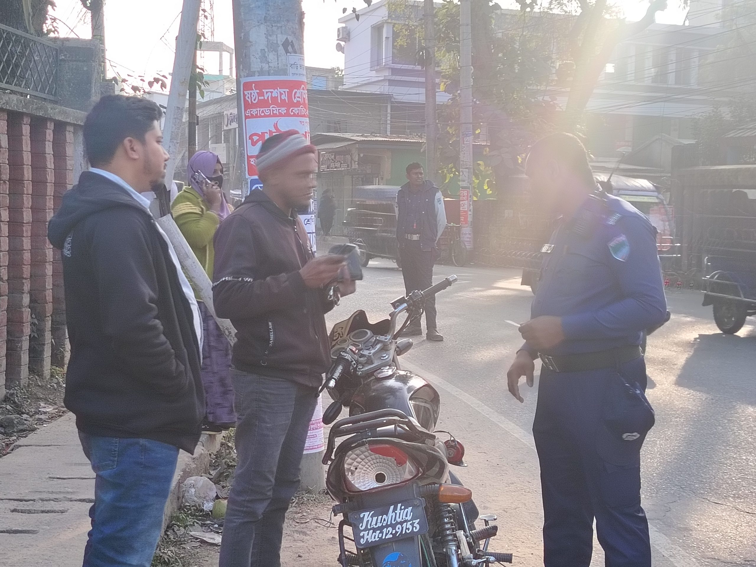 স্টাফ রিপোর্টার:চুয়াডাঙ্গা শহরের একাডেমি মোড়ে ট্রাফিক পুলিশের বিশেষ চেকপোস্ট অভিযান পরিচালিত হয়েছে। শনিবার বিকাল ৩টা থেকে রাত ৮টা পর্যন্ত চলা এই অভিযানে লাইসেন্স ও হেলমেটবিহীন মোটরসাইকেল, বাস, মাইক্রোবাসসহ বিভিন্ন ধরনের যানবাহনের কাগজপত্র যাচাই করা হয়।
