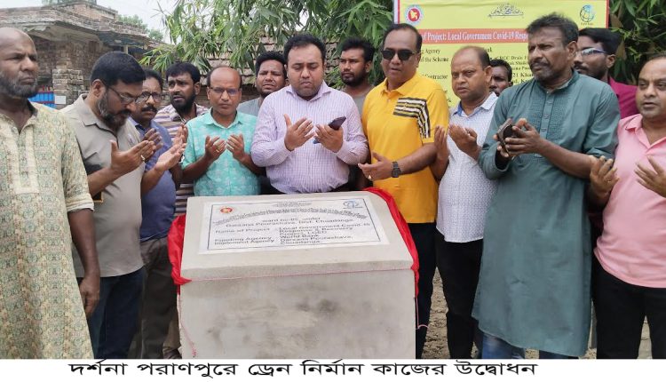 দর্শনা পরাণপুরে ড্রেনেজ কাজের উদ্বোধনদর্শনা অফিস: দর্শনা পরাণপুরে ড্রেন নির্মান কাজের আনুষ্ঠানিক উদ্বোধন করা হয়েছে। গতকাল সোমবার সকাল ১০ টার দিকে এ নির্মান কাজের আনুষ্ঠানিক উদ্বোধন করেন দর্শনা পৌর প্রশাসক, দামুড়হুদা উপজেলা সহকারি কমিশনার (ভূমি) কেএইচ তাসফিকুর রহমান। ২৭৫ মিটার, ৯৬ লাখ ৮৭ হাজার ৯শ টাকা ব্যায়ে ট্রেন নির্মান এ কাজ করছে কুষ্টিয়ার এসই এমএমসি ঠিকাদারী প্রতিষ্ঠান। উদ্বোধনকালে উপস্থিত ছিলেন, দর্শনা পৌর বিএনপির প্রধান সমন্বয়ক হাবিবুর রহমান বুলেট, সমন্বয় কমিটির অন্যতম সদস্য এনামুল হক শাহ মুকুল, নাহারুল ইসলাম মাস্টার, ইকবাল হোসেন, শরীফ উদ্দিন, দর্শনা পৌরসভার প্রকৌশলী সাজেদুল আলম, ঠিকাদারী প্রতিষ্ঠানের প্রতিনিধি নাজমুল আলম হুদা, যুবদলনেতা সাইফুল ইসলাম মুকুল, সোহেল তরফদার, রাসেদ আহমেদ সজিব, কাজি সাহেব, দর্শনা পৌর সেচ্ছাসেবকদলের সদস্য সচিব রাশেদুল ইসলাম রাসেদ, কৃষকদলনেতা শাহবুদ্দিন, ছাত্রদলনেতা ওমর ফারুক প্রমুখ।