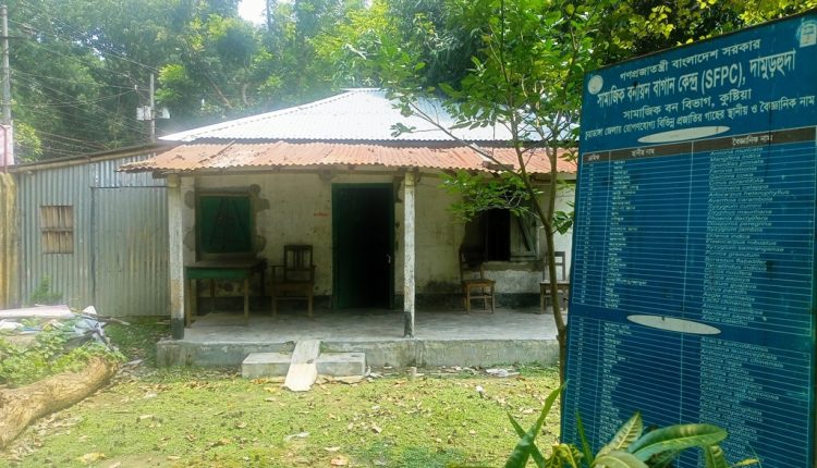 হাবিবুর রহমান: চুয়াডাঙ্গার দামুড়হুদা উপজেলা বনবিভাগের আধাপাকা চারচালা জরাজীর্ণ ঘরে চলছে অফিসের কার্যক্রম। একটু বৃষ্টিতে ভেসে যায় কক্ষ রক্ষনাবেক্ষণে ঝুঁকির মধ্যে থাকে প্রয়োজনীয় কাগজপত্র। উপজেলাটি বিভিন্ন ধরনের প্রাণীর অভয়ারণ্য। বনকর্মকর্তার নেই হিংস্র বণ্যপ্রাণী ধরার কোনো প্রশিক্ষণ নেই প্রাণী সংরক্ষণ করার মতো কোন সরঞ্জাম। বনবিভাগ অফিস সূত্রে জানা গেছে, ১৯৮৯-৯০ সালে নির্মিত চারচালা টিনের ছাউনি দেয়া আধাপাকা ছোট অফিস কক্ষ। অফিসের পূর্বপাশে রয়েছে নার্সারি। দীর্ঘদিনের ছাউনি হওয়ায় টিন নষ্ট হয়ে জরাজীর্ণ হয়ে গেছে, শুধুমাত্র অফিস কক্ষের উপরের টিনগুলো পরিবর্তন করা হলেও সামনের বারান্দা জরাজীর্ণ রয়েগেছে। সামান্য বৃষ্টিতে পানিতে ভেসে যায় অফিসের সামনের অংশ। এখানে রয়েছে বিপুল পরিমাণ মেছো বিড়ালসহ নানা ধরনের বন্যপ্রাণী। অনেক সময় এসব প্রাণী ধরার প্রয়োজন পড়ে, মেছো বিড়ালসহ বিভিন্ন ধরনের সাপ ধরার প্রয়োজন পড়লেও অফিসের কর্মকর্তা কর্মচারীদের যেমন হিংস্রপ্রাণী ধরার প্রশিক্ষণ নেই তেমনি নেই কোনো ধরনের সরঞ্জামাদি। অনেক সময় কিছুপ্রাণী অসুস্থ হয়ে থাকে আবার সাধারণ মানুষ বিভিন্ন সময় এসব প্রাণীর অত্যাচার থেকে রেহায় পেতে এগুলোকে মেরে আহত করে আটক করে রাখে। পরে বন বিভাগ সেগুলো উদ্ধার করে। তাদেরকে চিকিৎসা দেয়ার প্রয়োজন হলেও রাখারমতো সরঞ্জাম না থাকায় চিকিৎসা দিতে হিমসিম খেতে হয়। সে ক্ষেত্রে উপজেলা অফিস থেকে বিভাগীয় অফিসের সাথে যোগাযোগ করে তাদেরকে এনে সকল কায্যক্রম সম্পন্ন করতে হয়। দামুড়হুদা উপজেলা বন কর্মকর্তা মিজানুর রহমান বলেন, অফিসটির অবস্থা খুবই খারাপ হয়ে গেছে, এখানে বসে কাজ করার মতো কোন পরিবেশ নেই। দীর্ঘদিনের পুরাতন আধাপাকা চারচালা বিশিষ্ট অফিস কক্ষের মধ্যে রয়েছে একটি স্টোর রুম ওই রুমেই কাজ করতে হয়। রুমের সামনের টিনগুলো জরাজীর্ণ হয়ে গেছে। একটু বৃষ্টি হলেই বৃষ্টির পানিতে ভেসে যায় মানুষ দাঁড়ানোর মতো অবস্থা থাকে না। অফিসের প্রয়োজনীয় কাগজপত্র নিয়ে রক্ষা করতে সর্তকর্তা অবলম্বন করতে হয়। এছাড়াও আমাদের সবচেয়ে বড় সমস্যা হচ্ছে উপজেলাটি পশুপাখির অভয়ারণ্য এখানকার মাঠ ঘাট ঝোঁপ ঝাড়ে রয়েছে বিপুল সংক্ষক মেছো বিড়াল, হুতুমপেচা, বিভিন্ন প্রজাতির দেশীয় পাখি ও গুইসাপসহ বিভিন্ন ধরনের সাপেরও দেখা মেলে। অনেক সময় কৃষকরা এদের অত্যাচারে অতিষ্ট হয়ে তাদের ক্ষেত থেকে তাড়াতে গিয়ে আহত করে আবার কিছু সময় আটকও করে রাখে। কিন্তু এগুলো উদ্ধার করতে তাদের আটকানোর মতো কোনো সরঞ্জাম ও রাখার মতো খাঁচা না থাকায় আমাদের সমস্যার সম্মুখীন হতে হয়। অসুস্থ প্রাণীগুলো উদ্ধার করে আটকে চিকিৎসা দেয়া দুসাধ্য হয়ে পড়ে। এগুল