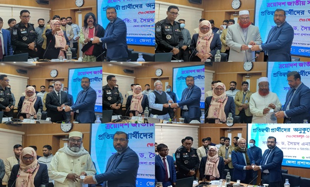 আজ বুধবার জেলা প্রশাসকের সম্মেলন কক্ষে জেলা প্রশাসক ও জেলা রির্টানিং অফিসার ড. সৈয়দ এনামুল কবির প্রার্থীদের মাঝে প্রতীক তুলে দেন।