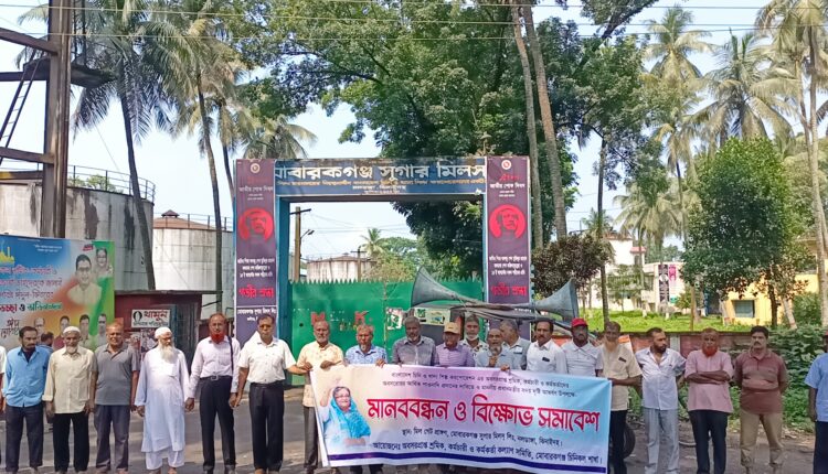 অবসরোত্তর গ্র্যাচুইটিসহ অন্য পাওনার দাবিতে মোবারকগঞ্জ চিনিকলে বিক্ষোভ