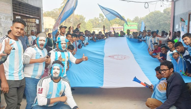আলমডাঙ্গা ব্যুরো: আর্জেন্টিনা কাতার বিশ্বকাপের শিরোপা জেতায় দলটির আলমডাঙ্গার উচ্ছ্বসিত সমর্থকেরা শহরে আনন্দ মিছিল করেছেন। তারা আতশবাজি ফুটিয়ে, নেচে-গেয়ে, ভুভুজেলা বাঁজিয়ে বিজয় উদযাপন করেন। বিশ্বকাপজয়ী আর্জেন্টিনার উচ্ছ্বসিত সমর্থকেরা ‘মেসি, মেসি’ বলে সেøাগানও দেন। প্রিয় দল আর্জেন্টিনার তৃতীয় বারের মতো বিশ্বকাপ জেতায় আলমডাঙ্গার সমর্থকেরা এ আনন্দ মিছিলের আয়োজন করেন। সোমবার বিকেলে আলমডাঙ্গা সরকারি কলেজ মাঠ থেকে বিজয় মিছিলটি বের হয়ে শহরের সড়কগুলো প্রদক্ষিণ করে। এ সময় সমর্থকরা ঢাকঢোল পিটিয়ে বাদ্যের তালে তালে নেচে-গেয়ে উল্লাস করেন। আনন্দ মিছিলে উপস্থিত ছিলেন আলমডাঙ্গা উপজেলা আর্জেন্টিনা সমর্থক গোষ্ঠির পক্ষে উপজেলা ভাইস চেয়ারম্যান ও উপজেলা ছাত্রলীগের সভাপতি অ্যাড. সালমুন আহমেদ ডন, কলেজ ছাত্রলীগের প্রচার সম্পাদক আব্দুল্লাহ আল হোসাইন বাদশা, পৌর ছাত্রলীগের যুগ্ম সম্পাদক নাহিদ হাসান তমাল, সখি ফ্লিমস ও সৃষ্টি মাল্টিমিডিয়ার সভাপতি আব্দুর জব্বার লিপু, রাজিবুল ইসলাম রাজিব, শরিফুল ইসলাম রোকন, সিরাজুল ইসলাম, লিমন মল্লিক, শাকিলসহ কয়েকশ সমর্থকরা।