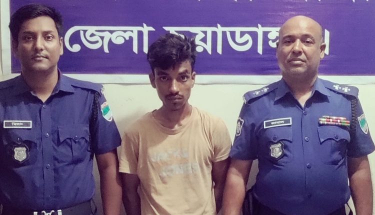 আলমডাঙ্গা ব্যুরো: আলমডাঙ্গায় বাজারে বিক্রয় নিষিদ্ধ ট্যাপেন্টাডল ট্যাবলেটসহ নাগদাহ গ্রামের খালিদ হাসানকে গ্রেফতার করেছে। এ সময় মাদক ব্যবসায়ী খালিদ হাসানের অন্যতম সহযোগী মাদক ব্যবসায়ী মনির হোসেন তার মোবাইল ফোন ফেলে রেখে পালিয়ে যায়। গত বুধবার দিনগত রাতে নাগদাহ টু বলিয়ারপুর সড়কের ছোট ব্রিজের উপর থেকে খালিদ হাসানকে গ্রেফতার করে। খালিদ হাসানের নিকট থেকে ৭০ পিস ট্যাপেন্টাডল ট্যাবলেট ও পলাতক মনির হোসেনের মোবাইল ফোন উদ্ধার করে পুলিশ। জানা গেছে, উপজেলার নাগদাহ গ্রামের আশরাফুল আলম লিটনের ছেলে মাদক ব্যবসায়ী খালিদ হাসান(২০) ও একই গ্রামের তোফাজ্জেল হোসেনের ছেলে মনির হোসেন(৩৫) দীর্ঘদিন ধরে মাদক ব্যবসা করে আসছে। তারা দুজন নাগদাহ ও বলিয়ারপুরসহ আশপাশ গ্রামে ট্যাপেন্টাডল ট্যাবলেট বিক্রয় করে। তাদের কারণে উঠতি বয়সের যুবসমাজ হাতের নাগালে মাদক পেয়ে মাদক সেবনের দিকে ঝুকে পড়ছে। যুুবকরা মাদকের টাকা জোগাড় করতে বিভিন্ন অপরাধ মুলক কর্মকান্ডে লিপ্ত হচ্ছে বলে এলাকাবাসি জানিয়েছে। ১১ জুন বুধবার রাতে গোপন সংবাদের ভিত্তিতে আলমডাঙ্গা থানার অফিসার ইনচার্জ মাসুদুর রহমানের নেতৃত্বে এসআই জামাল হোসেন সঙ্গীয় অফিসার এএসআই রাসেল তালুকদারসহ ফোর্স নিয়ে নাগদাহ থেকে বলিয়ারপুর সড়কে অভিযান চালায়। পুলিশের উপস্থিতি টের পেয়ে মাদক ব্যবসায়ী মনির হোসেন তার ব্যবহৃত মোবাইল ফোন ফেলে রেখে পালিয়ে গেলেও মুল মাদক ব্যবসায়ী খালিদ হাসানকে গ্রেফতার করে পুলিশ। খালিদ হাসানের নিকট থেকে উদ্ধার করে ৭০ পিস ট্যাপেন্টাডল ট্যাবলেট। এ বিষয়ে আলমডাঙ্গা থানায় মাদক দ্রব্য নিয়ন্ত্রন আইনে মাদক দুজনকে আসামি করে মামলা দায়ের করা হয়েছে। গতকালই খালিদ হাসানকে জেলহাজতে প্রেরন করা হয়েছে।