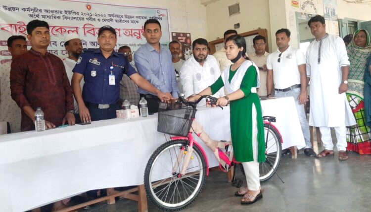 আলমডাঙ্গা ব্যুরো: আলমডাঙ্গার হারদী ইউনিয়ন পরিষদের সৌজন্যে দুটি মাধ্যমিক বিদ্যালয়ের গবীর ও মেধাবী ছাত্রীদের মধ্যে বাইসাইকেল বিতরণ করা হয়েছে। বার্ষিক উন্নয়ন কর্মসূচীর আওতায় ইউপির ২০২১-২০২২ অর্থ বছরের উন্নয়ন সহায়তা তহবিলের অর্থে মাধ্যমিক বিদ্যালয়ের গবীর ও মেধাবী ছাত্রীদের মাঝে বাইসাইকেল বিতরণ করা হয়। গতকাল বৃহস্পতিবার দুপুরে হারদী ইউনিয়ন পরিষদ চত্বরে ১২ জন গবীর ও মেধাবী ছাত্রীর মাঝে এ বাইসাইকেল বিতরণ করেন। হারদী মীর শামসুদ্দিন আহম্মেদ মাধ্যমিক বিদ্যালয়ের ৭ জন ও ওসমানপুর প্রাগপুর মাধ্যমিক বিদ্যালয়ের ৫জন ছাত্রীর হাতে এ বাইসাইকেল তুলে দেওয়া হয়। বাইসাইকেল বিতরণ অনুষ্ঠানে ইউনিয়ন পরিষদের চেয়ারম্যান ও হারদী ইউনিয়ন আওয়ামীলীগের সভাপতি আশিকুজ্জামান অল্টুর সভাপতিত্বে প্রধান অতিথি ছিলেন উপজেলা নির্বাহী অফিসার রনি আলম নূর। এসময় তিনি বলেন, আমরা শিক্ষার্থীদের হাতে সাইকেল তুলে দিতে চেয়েছি। ইউনিয়ন পরিষদের চেয়ারম্যানরা সার্বিক সহযোগিতা করেছেন। প্রতিটি ইউনিয়নের প্রত্যন্ত গ্রামের দরিদ্র ও মেধাবী কিশোরী শিক্ষার্থীদের হাতে সাইকেল তুলে দেয়া হয়। এতে নারী শিক্ষা সহজ ও প্রসার ঘটবে। নারীর ক্ষমতায়ন এক ধাপ এগিয়ে যাবে। বিশেষ অতিথি ছিলেন আলমডাঙ্গা থানার অফিসার ইনচার্জ সাইফুল ইসলাম, জেলা পরিষদের সদস্য মিজানুর রহমান, ওসমানপুর প্রাগপুর মাধ্যমিক বিদ্যালয়ের প্রধান শিক্ষক আব্দুল হাই, হারদী মীর শামসুদ্দিন আহম্মেদ মাধ্যমিক বিদ্যালয়ের সহকারী শিক্ষক ওমর খৈয়াম। ইউপি সচিব আলমগীর হোসেনের উপস্থাপনায় উপস্থিত ছিলেন ইউপি সদস্য মর্জিনা খাতুন, শাহানারা, নুরজাহান, শহিদুল ইসলাম, শেখ শাহানুর, আবু বক্কর সিদ্দীক, গাফফার আলী, আজিজুল হক, মুনসুর আলী, রমজান আলী, সাইদুর রহমান, মোস্তাক আহাম্মেদ প্রমুখ।