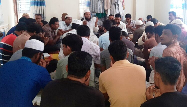 আলমডাঙ্গা ব্যুরো: আলমডাঙ্গায় মরহুম আলহাজ খবির উদ্দিন আহমেদের স্ত্রীর ৭ম মৃত্যুবার্ষিকী উপলক্ষে মিলাদ ও দোয়া মাহফিল অনুষ্ঠিত হয়েছে। গতকাল বাদ যোহর আলহাজ খবির উদ্দিন আহমেদ কমপ্লেক্সের ২য় তলায় দোয়া মাহফিল অনুষ্ঠিত হয়। ২০১৬ সালের এই দিনে মরহুম আলহাজ খবির উদ্দিন আহমেদের স্ত্রী মরহুমা নুরুন্নাহার বার্ধক্যজনিত রোগে আক্রান্ত হয়ে মৃত্যুবরণ করেন। মৃত্যুকালে তিনি ৩ ছেলে ও ৮ মেয়ে রেখে গেছেন। ৩ ছেলে ও ৩ মেয়ে প্রবাসী ও ৫ মেয়ে দেশে বসবাস করেন। দোয়া পরিচালনা করেন নওলামারি আলীম মাদরাসার অধ্যক্ষ মাওলানা আব্দুল লতিফ। এ সময় উপস্থিত ছিলেন আলহাজ খবির উদ্দিন আহমেদ কমপ্লেক্সের জেনারেল ম্যানেজার তাহাজ উদ্দিন, বণিক সমিতির সাধারণ সম্পাদক কামাল হোসেন, ড্রাগ সমিতির সভাপতি আকবার আলী আকু, যুগ্ম সম্পাদক হাসান রেজা মুন্না, প্রভাষক আবু সাঈদ, ফরিদুল ইসলাম, বিশিষ্ঠ ব্যবসায়ী ইকবাল, শরিফুল ইসলাম, সবদার আলী, আনারুল, আশরাফুল হক লুল মাস্টার, হাবিবুল করীম চঞ্চল, দেলোয়ার মাস্টার, মীর আসাদুজ্জামান উজ্জল প্রমুখ।