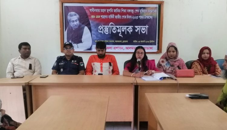 আলমডাঙ্গা ব্যুরো: আলমডাঙ্গায় ১৫ আগস্ট জাতীয় শোক দিবস পালন উপলক্ষে প্রস্তুতিসভা অনুষ্ঠিত হয়েছে। রোববার উপজেলা পরিষদের হলরুমে প্রস্তুতিসভা অনুষ্ঠিত হয়। প্রস্তুতি সভায় উপজেলা নির্বাহী অফিসার ¯িœগ্ধা দাসের সভাপতিত্বে প্রধান অতিথি ছিলেন উপজেলা ভাইস চেয়ারম্যান অ্যাড. সালমুন আহম্মেদ ডন। বিশেষ অতিথি ছিলেন উপজেলা সহকারী কমিশনার (ভূমি) রেজওয়ানা নাহিদ, প্রাণিসম্পদ কর্মকতা ডা. আব্দুল্লাহিল কাফি, কৃষি অফিসার রেহানা পারভীন, উপজেলা স্বাস্থ্য কমপ্লেক্সের মেডিকেল অফিসার নাজনীন সুলতানা কণা, আলমডাঙ্গা থানার পুলিশ পরিদর্শক অপারেশন শেখ ফরিদ। কলেজিয়েট স্কুলের উপাধ্যক্ষ শামীম রেজার উপস্থাপনায় উপস্থিত ছিলেন উপজেলা মাধ্যমিক শিক্ষা অফিসার জিয়াউল হক, উপজেলা শিক্ষা অফিসার শামসুজ্জোহা, ইউআরসি ইন্সট্রাক্টর জামাল হোসেন, আলমডাঙ্গা সরকারি কলেজের সহকারী অধ্যাপক ড. মাহবুব আলম, উপজেলা প্রকল্প কর্মকর্তা এনামুল হক, আলমডাঙ্গা পাইলট বালিকা বিদ্যালয়ের প্রধান শিক্ষক মনিরুজ্জামান, মহিলা ডিগ্রী কলেজের প্রভাষক কবিরুল হাসান, উপজেলা খাদ্য নিয়ন্ত্রক আব্দুল হামিদ, উপসহকারী মেডিকেল অফিসার ডা. মনজুরুল হক বেলু, উপজেলা আনসার ভিডিপি প্রশিক্ষক রওশনারা, পল্লী উন্নয়ন কর্মকর্তা শায়লা শারমীন, তথ্য অফিসার ¯িœগ্ধা দাস, আলমডাঙ্গা ওজোপাডিকোর আবাসিক প্রকৌশলী শাহিনুর রহমান, মেহেরপুর পল্লী বিদ্যুৎ সমিতির আলমডাঙ্গা জোনাল অফিসের পিইউসি শাহাদৎ হোসেন, পরিসংখ্যান তদন্তকারী মফিজুল হক, উপজেলা সমবায় অফিসার সাহারুল ইসলাম, উপজেলা মডেল মসজিদের ঈমাম মাওলানা মাসুদ কামাল প্রমুখ।
