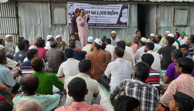 আলমডাঙ্গা ব্যুরো: আলমডাঙ্গা উপজেলা যুবদলের আহ্বায়ক ইঞ্জিনিয়ার খাইরুল ইসলামের আত্মার মাগফেরাত কামনায় স্মরণসভা ও দোয়া মাহফিল অনুষ্ঠিত হয়েছে। ২১ জুলাই বৃহস্পতিবার বাদ আছর কালিদাসপুর ইউনিয়ন যুবদলের আয়োজনে রফিকুলের চাতালে স্মরণসভা ও দোয়া মাহফিল অনুষ্ঠিত হয়। স্মরণসভায় উপজেলা যুবদলের সদস্য আলাউদ্দিন ম-লের সভাপতিত্বে প্রধান অতিথি ছিলেন উপজেলা যুবদলের যুগ্ম-আহ্বায়ক রোকনুজ্জামান সোহাগ। বিশেষ অতিথি ছিলেন উপজেলা বিএনপির সিনিয়র সহ-সভাপতি আক্তার জোয়ার্দ্দার, সাংগঠনিক সম্পাদক আনোয়ার হোসেন, কালিদাসপুর ইউনিয়ন বিএনপির সভাপতি আইনাল হক, বিএনপি নেতা বাবলু মিয়া, লালন, রমজান, জিল্লু, ঠান্ডু, রেজাউল হক, সেলিম, মারফত আলী। যুবদল নেতা মিলনের উপস্থাপনায় উপস্থিত ছিলেন যুবদল নেতা মিনারুল ইসলাম, সাখাওয়াত হোসেন, অনু, আলম হোসেন, রিন্টু, মজনু, জসিম, উপজেলা ছাত্রদলের যুগ্ম আহ্বায়ক মাসুদ রানা, জীবন, ছাত্রদল নেতা সোহেল রানা, রুমন, নোমান, চপল, শাওন, রাজ, স্বাধীন, হামজা, হোসেন প্রমুখ। দোয়া পরিচালনা করেন মাওলানা আকরাম হোসেন।