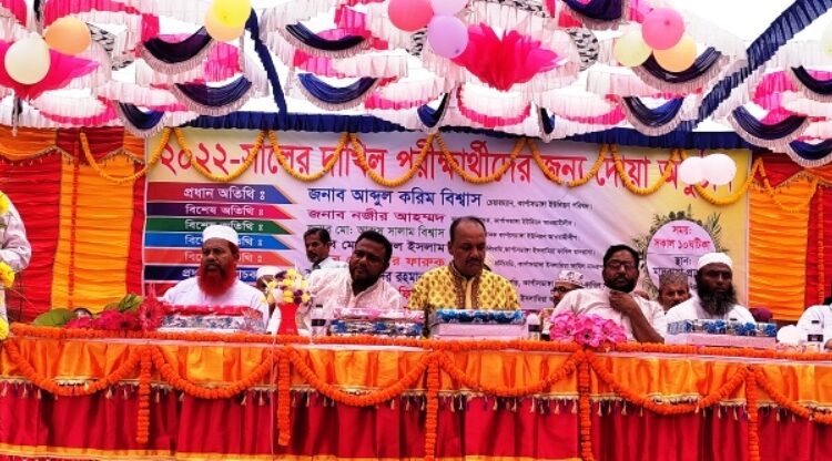 কার্পাসডাঙ্গা প্রতিনিধি: দামুড়হুদা উপজেলার কার্পাসডাঙ্গা ইসলামিয়া ফাযিল মাদরাসার দাখিল পরীক্ষার্থীদের বিদায় ও দোয়া অনুষ্ঠিত হয়েছে। গতকাল শনিবার সকাল ১০টার দিকে মাদরাসার শিক্ষার্থীদের আয়োজনে প্রতিষ্ঠানের অধ্যক্ষ মাও. মো. জুলফিকার আলীর সভাপতিত্বে অনুষ্ঠানে প্রধান অতিথি ছিলেন কার্পাসডাঙ্গা ইউপি চেয়ারম্যান আব্দুল করিম বিশ্বাস। প্রধান আলোচক ছিলেন মাদরাসা গর্ভনিং বডির সভাপতি ও ইউনিয়ন আওয়ামী লীগের সাংগঠনিক সম্পাদক জাহিদুর রহমান মুকুল। বিশেষ অতিথি হিসেবে বক্তব্য রাখেন ইউনিয়ন আওয়ামী লীগের সাধারণ সম্পাদক নজির আহম্মেদ, যুগ্ম-সাধারণ সম্পাদক ও প্রতিষ্ঠানের সাবেক সভাপতি আব্দুস সালাম বিশ্বাস, প্রতিষ্ঠানের সহ-সভাপতি মো. মনিরুল ইসলাম, প্রতিষ্ঠাতা সদস্য আলহাজ হাফেজ মাও. ওমর ফারুক। উপস্থিত ছিলেন সহকারী অধ্যাপক মোহাম্মদ আলী, প্রভাষক রফিকুল ইসলাম, প্রভাষক শহিদুল ইসলাম, শিক্ষক মাও. আব্দুর রশিদ, হাফিজুর রহমান, মশিউর রহমান, ওবাইদুর রহমান, সিরাজুল ইসলাম, জহিরুল ইসলামসহ শিক্ষকবৃন্দ, অভিভাবকবৃন্দ, কর্মচারীসহ শিক্ষার্থীরা। দোয়া অনুষ্ঠানটি পরিচালনা করেন মাও. মো. জুলফিকার আলী। অনুষ্ঠানটির সঞ্চানলায় ছিলেন প্রভাষক এমদাদুল হক মিলন।