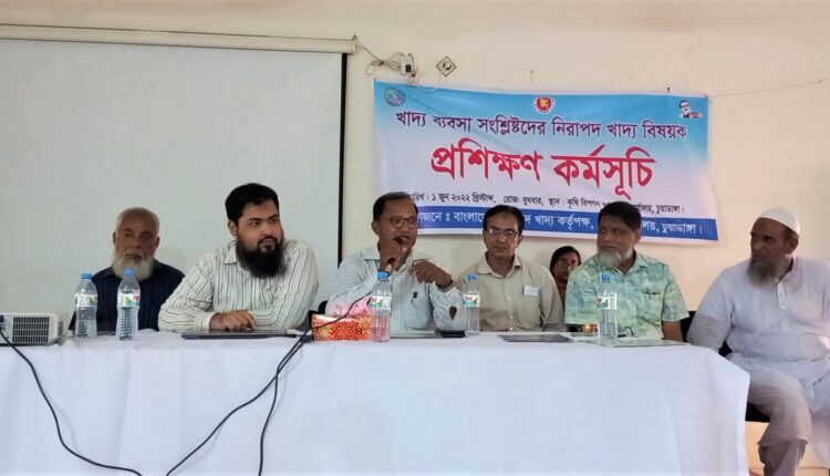 স্টাফ রিপোর্টার: বাংলাদেশ নিরাপদ খাদ্য কর্তৃপক্ষ চুয়াডাঙ্গায় অনুষ্ঠিত হয়েছে খাদ্য ব্যবসা সংশ্লিষ্টদের নিরাপদ খাদ্য বিষয়ক দিনব্যাপী প্রশিক্ষণ কর্মশালা। গতকাল বুধবার বেলা ১১টায় চুয়াডাঙ্গা জেলা কৃষি বিপণন কার্যালয়ের হলরুমে এ অনুষ্ঠানের আয়োজন করা হয়। চুয়াডাঙ্গা জেলা নিরাপদ খাদ্য অফিসার রিয়াদ রায়হান আবির প্রশিক্ষানার্থীদের কাছে নিরাপদ খাদ্যের বিভিন্ন দিক তুলে ধরেন এবং পাশাপাশি খাদ্যে ভেজাল ও অনিরাপদ খাবার বিক্রি করার অপরাধের শাস্তি সম্পর্কেও ধারণা দেন। তিনি বলেন, হোটেল রেস্তোরাঁয় মাছ, মাংস জাতীয় খাবার থেকে ফলমূল শাকসবজি জাতীয় খাবার পৃথকভাবে রাখতে হবে। রান্না করা খাবার ও ডিশ ওয়াশের দ্রব্য আলাদা রাখতে হবে। চিনি ও লবন জাতীয় সংরক্ষণযোগ্য খাবারগুলো মেঝে থেকে কমপক্ষে ৬ ইঞ্চি উপরের স্থানে রাখতে হবে। নিরাপদ খাদ্য আইন ২০১৩ মেনে চলার জন্য খাদ্য ব্যবসার সাথে সংশ্লিষ্ট সকলকে আহবান জানান তিনি। সভাপতিত্ব করেন গ্রীনফুডের স্বত্বাধিকারী ও চুয়াডাঙ্গা জেলা বেকারি মালিক সমিতির সভাপতি মোহা. তহিবুর রহমান জোয়ার্দ্দার বাবু। বিশেষ অতিথি ছিলেন জেলা কৃষি বিপণন কর্মকর্তা শহিদুল ইসলাম। বক্তব্য রাখেন চুয়াডাঙ্গা দোকান মালিক সমিতির সভাপতি আব্দুল কাদের জগলু, সাধারণ সম্পাদক ইবরুল হাসান জোয়ার্দ্দার, হোটেল রেস্তোরাঁ মালিক সমিতির সভাপতি গোলাম মাহবুব মুকুল, সাধারণ সম্পাদক মো. পিয়ার শেখ। চুয়াডাঙ্গার হোটেল, রেস্তোঁরা, বেকারি মালিক-শ্রমিকসহ অন্তত ১শ’ জন প্রশিক্ষাণার্থী কর্মশালায় অংশ নেন।