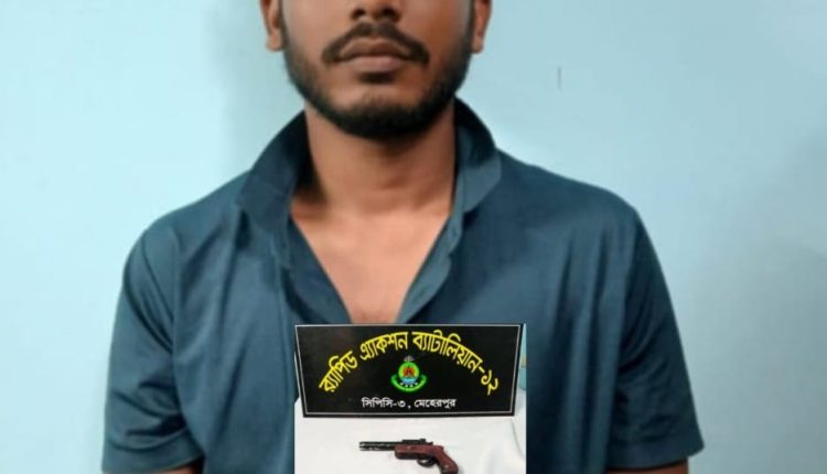 মেহেরপুর অফিস:মেহেরপুরের গাংনীতে ভারতীয় ১টি ওয়ান শুটার গান ও ২টি শটগানের লীডবল কার্তুজসহ সুমন আহমেদ ওরফে সৌমিক (৩০) নামের একজন গ্রেপ্তার করা হয়েছে।