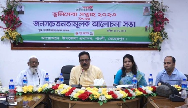 গাংনী প্রতিনিধি: ভূমি সেবা সপ্তাহ উপলক্ষে মেহেরপুরের গাংনীতে জনসচেতনতামূলক আলোচনা অনুষ্ঠিত হয়েছে। গতকাল রোববার বিকেলে গাংনী উপজেলা প্রশাসনের আয়োজনে ইউএনও সভাকক্ষে এ অনুষ্ঠানের আয়োজন করা হয়।