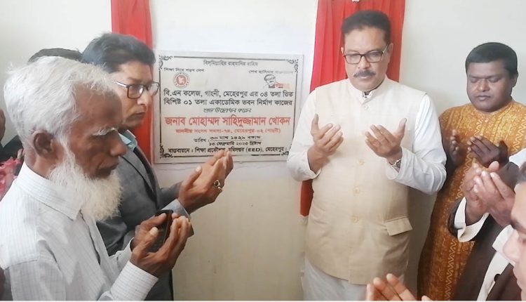 গাংনী প্রতিনিধি: মেহেরপুরের গাংনী উপজেলার ভাপটাড়া নওয়াপাড়া (বিএন) কলেজের নবনির্মিত অ্যাকাডেমিক ভবনের উদ্বোধন করা হয়েছে। গতকাল সোমবার সকালে ভবনটির আনুষ্ঠানিক উদ্বোধন করেন মেহেরপুর-২ (গাংনী) আসনের সংসদ সদস্য মোহাম্মদ সাহিদুজ্জামান খোকন। উদ্বোধনী শেষে কলেজ সভাকক্ষে আলোচনাসভা অনুষ্ঠিত হয়। ৮০ লাখ ৪০ হাজার টাকা ব্যয়ে চারতলা ভিত বিশিষ্ট একতলা একাডেমিক ভবনটি নির্মাণ করেছে শিক্ষা প্রকৌশল অধিদপ্তর।