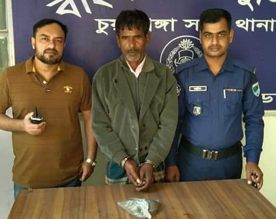 পুলিশ জানিয়েছে, গত পরশু রোববার দিনগত রাতে বিভিন্ন এলাকায় নিয়মিত ওয়ারেন্ট তামিল ও মাদকবিরোধী অভিযান চালায় চুয়াডাঙ্গা সদর থানা পুলিশ। এসআই মাসুদ রানা সঙ্গীয় ফোর্সসহ রাত সাড়ে ১১টার দিকে সদর উপজেলার নতুন ভান্ডারদহ গ্রামে অভিযান চালান। এ সময় চুয়াডাঙ্গা-ঝিনাইদহ সড়কের পাশ থেকে আটক করা হয় আব্দুর রশিদকে। তার দেহ তল্লাশি করে উদ্ধার করা হয় ৫০০ গ্রাম গাঁজা। রাতেই এসআই মাসুদ রানা বাদী হয়ে চুয়াডাঙ্গা সদর থানায় মাদকদ্রব্য নিয়ন্ত্রণ আইনে একটি মামলা দায়ের করেন। গতকাল সোমবার আব্দুর রশিদকে আদালতে সোপর্দ করা হয়েছে।