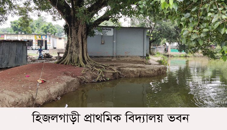 এলাকার শিক্ষানুরাজ্ঞীদের প্রচেষ্টায় শিক্ষার আলো ছড়াতে ১৯৫৭ সালে প্রতিষ্ঠিত হয় চুয়াডাঙ্গা সদর উপজেলার বেগমপুর ইউনিয়নের হিজলগাড়ী সরকারি প্রাথমিক বিদ্যালয়টি। হাটি-হাটি পা-পা করে ৬৫ বছর বয়স হয়েছে বিদ্যালয়টির। এ প্রতিষ্ঠন থেকে শিক্ষা নিয়ে অনেকেই আলোকিত হয়েছেন। এরই ধারাবাহিকতায় চলতি বছরে বিদ্যালয়টিতে শিশু থেকে ৫ম শ্রেণি পর্যন্ত শিক্ষার্থী ভর্তি হয়েছে ২৯৯ জন। পূর্ব-পশ্চিম লম্বা লম্বি ৫ কক্ষ বিশিষ্ট পুরাতন একটি ভবনের পাশাপাশি স্থানীয় সরকার প্রকৌশল অধিদফতর ১৯৯৫-৯৬ অর্থ বছরে বিদ্যালয়ের জমির শেষ প্রান্তে উত্তর-দক্ষিণ লম্বা করে ৪ কক্ষ বিশিষ্ট আর একটি ভবন নির্মাণ গড়ে ওঠে। যেখানে শিক্ষকদের একটি অফিস কক্ষসহ ৩টি শ্রেণি কক্ষ রয়েছে। এ ভবনের পেছনে রয়েছে একটি পুকুর। পুকুরের পশ্চিম পাড় ভাঙতে ভাঙতে ভবনের প্রায় কাছাকাছি চলে এসেছে। পুকুরের পানির ঢেউয়ে মাটি ধ্বসে ভবনটি প্রায় পুকুরের গর্ভে ঢুকে গেছে। যে কোনো সময় ভবনটি পুকুরের মধ্যে ধসে পড়ার আশঙ্কা করছে এলাকাবাসী। বিদ্যালয়ের সভাপতি আওয়াল হোসেন বলেন, এটি একটি সরকারি প্রতিষ্ঠান। বর্তমানে ভবনটি খুবই ঝুঁকির মধ্যে আছে। প্রধান শিক্ষককে বিষয়টি যথাযথ কর্তৃপক্ষকে জানানোর জন্য বলেছি। বিদ্যালয়ের প্রধান শিক্ষক শহিদুল ইসলাম বলেন, আজ (বৃহস্পতিবার) জেলা শিক্ষা অফিসার, ইউপি চেয়ারম্যান এবং পুকরের মালিকেরা সরজমিনে দেখতে এসেছিলো। পুকুরের মালিকেরা তিন মাসের সময় নিয়েছে। শুষ্ক মৌসুমে পানি শুকিয়ে গেলে সমস্যার সমাধান হয়তো হয়ে যাবে।