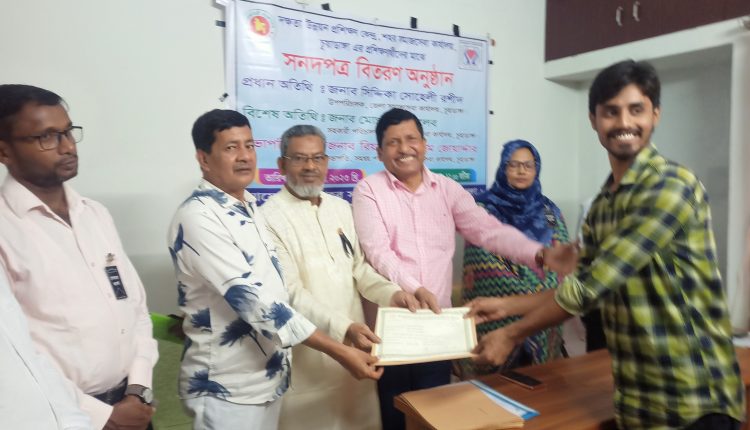 চুয়াডাঙ্গায় কম্পিউটার অ্যাপ্লিকেশন কোর্সের প্রশিক্ষণার্থীদের মাঝে সনদপত্র বিতরণ