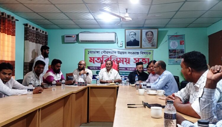 এছাড়া সভায় চুয়াডাঙ্গা পৌরসভার উন্নয়ন প্রস্তাবনা আলোচনায় স্থান পায় চুয়াডাঙ্গা পৌরপার্ক, চুয়াডাঙ্গা শিশু কিশোর সাঁতার প্রশিক্ষণ কেন্দ্র উন্নয়ন ও প্রস্তাবিত শিশু-কিশোর পার্ক নির্মাণ, চুয়াডাঙ্গা নিচের বাজারের বর্জ্য দূষণ থেকে মাথাভাঙ্গা নদী রক্ষা, শহর সংলগ্ন নবগঙ্গা খালের ওপর দিয়ে ফুট ওভার রাস্তা নির্মাণ, চুয়াডাঙ্গা রেলগেটের আন্ডারপাস সংস্কার করে পানি নিষ্কাশন ব্যবস্থা করা, মাথাভাঙ্গা ব্রিজের ওপরে ঝুলন্ত ব্রিজ নির্মাণ করে পতিত জমি ব্যবহার করে খেলার মাঠ এবং বিনোদনের স্পট করা, চুয়াডাঙ্গা রেলস্টেশন সংলগ্ন এলাকা দূষিত না করার জন্য প্রয়োজনীয় ব্যবস্থা গ্রহণ করা, শহরের জনগুরুত্বপূর্ণ সড়কগুলো বিশেষ করে চুয়াডাঙ্গা সদর হাসপাতাল সড়ক সংস্কার করে জরুরী ভিত্তিতে হাসপাতালে রোগী আনা নেয়ার সু-ব্যবস্থা করাসহ বিভিন্ন বিষয়ে আলোচনা করা হয়। মতবিনিময় সভায় উপস্থিত ছিলেন চুয়াডাঙ্গা পৌরসভার কাউন্সিলর শাহিন আক্তার, সুলতানা আঞ্জু, শেফালী খাতুন, মুনসুর আলী মনো, আব্দুল আজিজ জোয়ার্দ্দার, মহলদার ইমরান, মাফিজুর রহমান, মুন্সি আলাউদ্দীন আহম্মেদ, ফরজ আলী শেখ, উজ্জ্বল হোসেন, সাইফুল ইসলাম, কামরুজ্জামান চাঁদ, পৌর নির্বাহী কর্মকর্তা এস এম রেজাউল করিম, নির্বাহী প্রকৌশলী আয়ুব আলী বিশ্বাস, সহকারী প্রকৌশলী হাফিজুর রহমান, চুয়াডাঙ্গা প্রেসক্লাবের সাধারণ সম্পাদক রাজীব হাসান কচি, বাংলাদেশ সাংবাদিক সমিতি চুয়াডাঙ্গা জেলা ইউনিটের সাধারণ সম্পাদক বিপুল আশরাফ, চুয়াডাঙ্গা প্রেসক্লাবের যুগ্ম সাধারণ সম্পাদক ইসলাম রকিব, সিনিয়র সাংবাদিক শাহ আলম সনি, সাংবাদিক রিফাত রহমান, মফিজ উদ্দিন জোয়ার্দ্দার, মেহেরাব্বিন সানভী প্রমুখ।