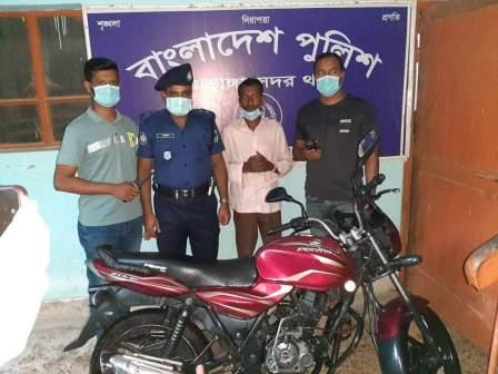 স্টাফ রিপোর্টার: চুয়াডাঙ্গা সদর হাসপাতাল চত্বর থেকে চুরি হওয়া মোটরসাইকেলসহ চোরচক্রের সদস্যদের একজনকে আটক করেছে পুলিশ। গতপরশু বুধবার রাতে জীবননগর উপজেলার হাসাদহ এলাকা থেকে তাকে আটক করে চুয়াডাঙ্গা সদর থানা পুলিশ। আটককৃত চোরচক্রের সদস্য চুয়াডাঙ্গা শান্তিপাড়ার আমসার আলীর ছেলে আব্দুল হালিম (৩৪)। গতকাল বৃহস্পতিবার দুপুর ১২টার দিকে চুয়াডাঙ্গা সদর থানায় আয়োজিত এক প্রেস ব্রিফিংয়ে অতিরিক্ত পুলিশ সুপার (সদর সার্কেল) জাহাঙ্গীর আলম বলেন, গত ২৯ জুন সকাল ৯টার দিকে চুয়াডাঙ্গা সদর হাসপাতালের অভ্যন্তরে করোনা ইউনিটের সামনে থেকে একটি লাল রঙের ১০০সিসির ডিসকভার মোটরসাইকেল চুরি হয়ে যায়। পরে ঘটনাটি সামাজিক যোগাযোগ মাধ্যমসহ বিভিন্ন মিডিয়ায় প্রচার হয়। বিষয়টি নজরে আসার পর চুয়াডাঙ্গার পুলিশ সুপার জাহিদুল ইসলামের নির্দেশে মাঠে নামে সদর থানা পুলিশ। সিসিটিভি ফুটেজ ও তথ্য প্রযুক্তির সর্বোচ্চ ব্যবহারের মাধ্যমে সদর থানার অফিসার ইনচার্জ আবু জিহাদ ফকরুল আলম খানের নেতৃত্বে পরিদর্শক (অপারেশন) একরাম হোসাইন, এসআই হাসানুজ্জামান, এসআই শেখ হাদীউজ্জামানের সমন্বয়ে গঠিত একটি চৌকস টিম অভিযান শুরু করে। ঘটনার ২৪ ঘন্টার মধ্যে ঘটনার সাথে জড়িত শনাক্তকৃত চোর আব্দুল হালিমকে চোরাই মোটরসাইকেলসহ জীবননগর উপজেলার হাসাদহ এলাকা থেকে আটক করা হয়। ঘটনায় জড়িত অন্য চোরদের ধরতে কাজ করছে পুলিশ। আসলে এরা একটা সিন্ডিকেট। এই সিন্ডিকেটের সকল সদস্যদের শনাক্তে আমরা কাজ করছি। আশা করছি শুব শিগগিরই এই চোর সিন্ডিকেটের অন্য সদস্যদের আইনের আওতায় আনতে সক্ষম হবো।