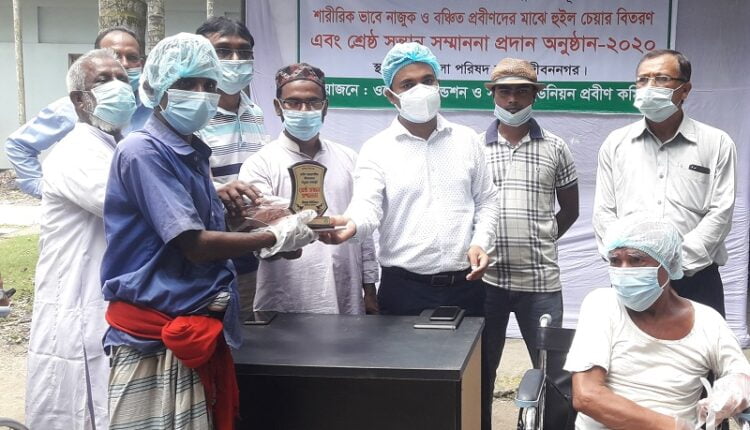 জীবননগর ব্যুরো: জীবননগর উপজেলা পরিষদ ও ওয়েভ ফাউন্ডেশনের উদ্যোগে অস্বচ্ছল প্রতিবন্ধীদের মাঝে হুইল চেয়ার বিতরণ ও সীমান্ত ইউনিয়নের শ্রেষ্ঠ সন্তানদের সম্মাননা প্রদান করা হয়। গতকাল মঙ্গলবার উপজেলা পরিষদ হলরুমে প্রধান অতিথি হিসেবে প্রতিবন্দ্বীদের হাতে হুইল চেয়ার ও শ্রেষ্ঠ সন্তানদের হাতে সম্মাননা ক্রেস্ট তুলে দেন অনুষ্ঠানের প্রধান অতিথি উপজেলা চেয়ারম্যান হাজি হাফিজুর রহমান।