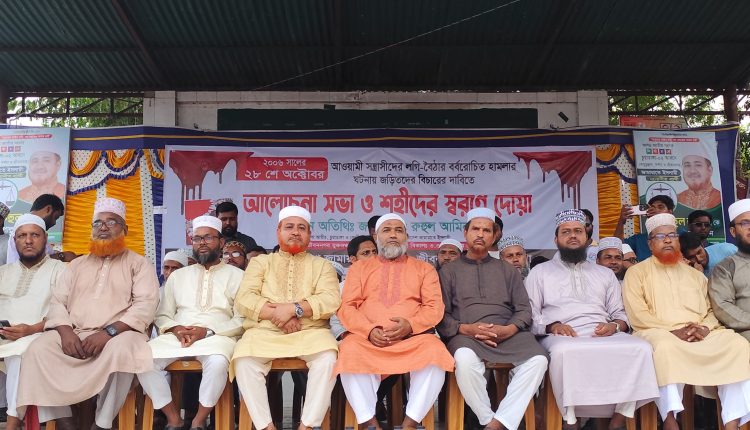 জীবননগর ব্যুরো : ২০০৬ সালে ২৮ অক্টোবর আওয়ামী লীগ সন্ত্রাসীদের লগি- বৈঠার বর্বর হামলায় নিহত শহীদদের স্মরণে জীবননগরে দোয়া ও আলোচনা সভা অনুষ্ঠিত হয়েছে। মঙ্গলবার বিকালে বাসস্ট্যান্ডের মুখ্যমঞ্চে জীবননগর উপজেলা জামায়াতে ইসলামীর উদ্যোগে এ আলোচনা সভা ও দোয়া অনুষ্ঠানের আয়োজন করা হয়। আলোচনা সভায় প্রধান অতিথির বক্তব্য রাখেন চুয়াডাঙ্গা জেলা জামায়াতে ইসলামীর আমির ও চুয়াডাঙ্গা-২ আসনের সংসদ সদস্য পদপ্রার্থী অ্যাডভোকেট রুহুল আমিন। প্রধান অতিথির বক্তব্যে তিনি বলেন, স্বাধীনতা সার্বভৌমত্বের প্রশ্নে জামায়াতে ইসলামী আপসহীন। যার প্রমাণ ঐতিহাসিক ২৮ অক্টোবর। সেদিন সারাদেশে জামায়াতের কর্মীরা জীবন উৎসর্গ করেছে। ইসলামী আন্দোলন ও দেশের সার্বভৌমত্ব রক্ষার জন্য ঐক্যবদ্ধভাবে কাজ করেছে । আমাদের শহীদরা শুধু জামায়াতের কাছে নয় পুরো জাতির কাছে প্রেরণার বাতিঘর।