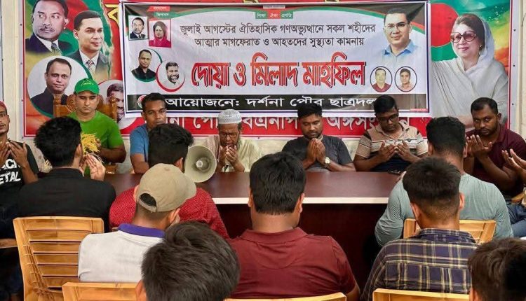 জুলাই-আগস্ট গণঅভ্যুত্থানে শহিদদের জন্য দর্শনা ছাত্রদলের দোয়া মাহফিল