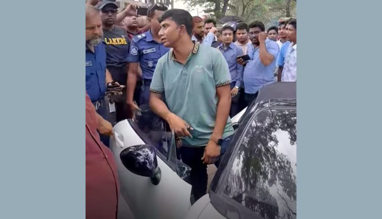 ঝিনাইদহ প্রতিনিধি: ঝিনাইদহে বিলাসবহুল গাড়িসহ এক অনলাইন জুয়াড়িকে আটক করা হয়ছে। গতকাল রোববার দুপুরে ঝিনাইদহ-চুয়াডাঙ্গা সড়কের পাশে অবস্থিত পানি উন্নয়ন বোর্ড অফিসের সামনে থেকে তাকে আটক করে গোয়েন্দা সংস্থা (এনএসআই)। ম্যাজিস্ট্রেটের উপস্থিতিতে তার দেহ তল্লাশি চালিয়ে একটি পিস্তল সদৃশ বস্তু উদ্ধার করে তারা। এরপর তাকে সদর থানায় হন্তান্তর করা হয়। আটককৃত ব্যক্তি হলেন-তাওহীদ হোসেন (৩৮) সদর উপজেলার মধুহাটি ইউনিয়নের চান্দলী গ্রামের হোমিও ডাক্তার হায়দার আলীর ছেলে। জানা গেছে, আটককৃত তাওহীদ গরুর খামারের পাশাপাশি অনলাইন জুয়া খেলতো। অভিযোগ আছে অনলাইনে জুয়া খেলা করে কয়েক কোটি টাকা হাতিয়েছে ওই যুবক। তার ফাদে পা দিয়ে অনলাইনে জুয়া খেলতে গিয়ে উঠতি বয়সি যুবকেরা টাকা জোগাড় করতে গিয়ে পিতা-মাতাকে লাঞ্ছিত করে আসছিলো নিয়মিত। এরপর বিষয়টি প্রশাসনের নজরে আসলে গোপনে তদন্ত চালায় তারা। এ ব্যাপারে সদর থানার ভারপ্রাপ্ত কর্মকর্তা (ওসি) শেখ মোহাম্মদ সোহেল রানা জানান, আটককৃত জুয়াড়ির বিরুদ্ধে এখনও তদন্ত চলছে। তদন্ত শেষ হলে মামলা দিয়ে তাকে জেল হাজতে প্রেরণ করা হবে।