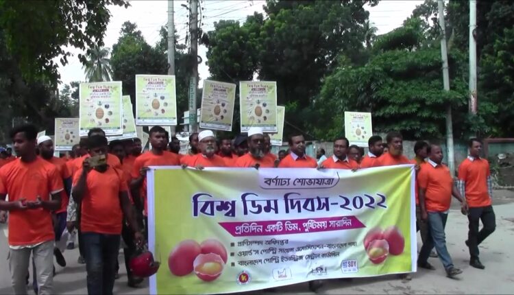 ঝিনাইদহ অফিস জানিয়েছে, ঝিনাইদহ জেলা প্রাণিসম্পদ বিভাগের আয়োজনে শুক্রবার সকালে শহরের আরাপপুর থেকে একটি র্যালি বের করা হয়। র্যালিটি শহরের বিভিন্ন সড়ক ঘুরে প্রাণিসম্পদ বিভাগের কার্যালয় চত্বরে গিয়ে শেষ হয়। পরে সেখানে আলোচনাসভা অনুষ্ঠিত হয়। জেলা প্রাণিসম্পদ কর্মকর্তা ডা. মনোজিৎ কুমার সরকারের সভাপতিত্বে অনুষ্ঠানে প্রধান অতিথি হিসেবে উপস্থিত ছিলেন জেলা প্রশাসক মনিরা বেগম। বিশেষ অতিথি ছিলেন প্রাণিসম্পদ অফিসের প্রশিক্ষণ কর্মকর্তা ডা. সুব্রত কুমার ব্যানার্জী, কৃত্রিম প্রজনন বিভাগের উপ-পরিচালক ডা. প্রকাশ চন্দ্র ম-ল, সদর উপজেলা প্রাণি সম্পদ কর্মকর্তা ডা. মনোজিৎ কুমার ম-ল। এসময় বক্তারা, দেহের পুষ্টি পূরণ ও স্বাস্থ্য ভালো রাখতে প্রতিদিন একটি ডিম খাওয়ার পরামর্শ দেন। আলোচনাসভা শেষে ডিম বিতরণ করা হয়।