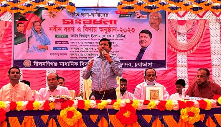 নীলমণিগঞ্জ মাধ্যমিক বিদ্যালয়ে কৃতি ছাত্রছাত্রীদের সম্মাননা : নবীন বরণ ও বিদায় অনুষ্ঠানে টোটন জোয়ার্দ্দার