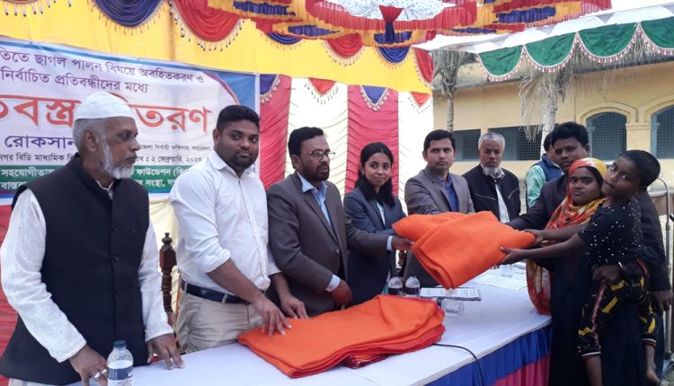 দর্শনা অফিস: আধুনিক পদ্ধতিতে ছাগল পালন বিষয়ে অবহিতকরণ ও প্রতিবন্ধিদের মধ্যে কম্বল বিতরণ করেছেন দামুড়হুদা উপজেলার নবাগত নির্বাহী অফিসার রোকসানা মিতা। মৌচাক সমাজ কল্যাণ সংস্থার আয়োজনে গতকাল বৃহস্পতিবার বিকেলে দর্শনা মেমনগর মাধ্যমিক বিদ্যালয় চত্বরে অনুষ্ঠিত এ সভায় প্রধান অতিথি হিসেবে উপস্থিত ছিলেন, দামুড়হুদা উপজেলা নির্বাহী অফিসার রোকসানা মিতা। মৌচাক সমাজ কল্যাণ সংস্থার সভাপতি তক্কেল আলীর সভাপতিত্বে অন্যান্যের মধ্যে ছিলেন, দামুড়হুদা উপজেলা সমাজসেবা কর্মকর্তা তোফাজ্জেল হক, প্রাণী সম্পদ কর্মকর্তা ডা. আব্দুল্লাহ আল মামুন, মোজহারুল ইসলাম, আ. রফিক কাবী, ফয়সাল আহেমদ। আতিকুজ্জামান পান্নার প্রাণবন্ত উপস্থাপনায় আরো উপস্থিত ছিলেন, আ. কাদের, তহশিলদার রফিক উদ্দিন আহমেদ, রিপন, মবগুল, ফলেহার প্রমুখ।