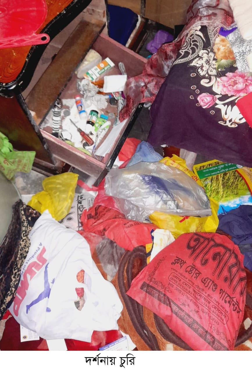 দর্শনা অফিস: দর্শনা ঈশ্বরচন্দ্রপুরে দুঃসাহসিক চুরির ঘটনা ঘটেছে। চোরেরা ফাঁকা বাড়ি পেয়ে প্রধান ফটকের তালা ভেঙ্গে নগদ টাকা, সোনা ও রূপার গহনাগাটি সহ মালামাল নিয়ে পালিয়েছে। গত পরশু সোমবার দর্শনা পৌর শহরের ঈশ্বরচন্দ্রপুর বাগানপাড়ার আলাউল হোসেন পিরুর ছেলে সোহাগ হোসেনের বাড়িতে এ চুরির ঘটনা ঘটে। জানা গেছে, সোহাগের এক নিকক আতিœয় মারা যান দামুড়হুদার হোগলডাঙ্গায়। সোহাগ ছাড়া বাড়ির সকলে ওই মরা বাড়িতে যান। এ দিকে দর্শনা রেলবাজার দোকান মালিক সমিতি নির্বাচনে সোহাগ হোসেন দপ্তর সম্পাদক পদপ্রার্থী। নির্বাচন ঘনিয়ে আশায় সে রাত ১১ টা পর্যন্ত বাজারের নির্বাচনী প্রচারণায় ব্যাস্ত থেকে বাড়ি ফেরেন। বাড়ি ফিরেই মাথায় হাত সোহাগের। সোহাগ জানান, বাড়ির মূল ফটকের তালার ভেঙ্গে চোরের ঘরে প্রবেশ করে। টেবিলের ড্রয়ার ভেঙ্গে নিয়েছে নগদ সাড়ে ৩৩ হাজার টাকা। তার স্ত্রী ও ২ কন্যার সোনা ও রুপার গহনাগাটি সহ বিভিন্ন মালামাল। এ ঘটনায় খবর পেয়ে দর্শনা থানা পুলিশ ঘটনাস্থল পরিদর্শন করেছেন। তবে গ্রেফতার হয়নি অভিযুক্ত কোন চোর।।