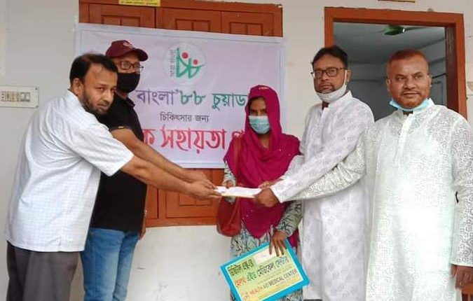 কার্পাসডাঙ্গা প্রতিনিধি : দামুড়হুদা উপজেলার মুক্তারপুরে অসুস্থ অনার্স পড়ুয়া ছাত্রীকে নদগ অর্থ সহায়তা প্রদান করা হয়েছে। আজ বুধবার সারা বাংলা ৮৮’র পক্ষ থেকে অসুস্থ মুক্তারপুর গ্রামের দামুড়হুদা ওদুদ শাহ কলেজের অনার্স ১ম বর্ষের ছাত্রী রাহিনা খাতুনকে নগদ ১৫০০০ হাজার টাকা অর্থ সহায়তা প্রদান করা হয়েছে। এসময় উপস্থিত ছিলেন সারা বাংলা ৮৮’র জেলা সমন্বয়কারী ও সদর থানার অফিসার ইনচার্জ আবু জিহাদ ফখরুল আলম খাঁন, সহকারি সমন্বয়কারী দামুড়হুদা সদর ইউপি চেয়ারম্যান ও প্রভাষক শরীফুল আলম মিল্টন, সহকারী সমন্বয়কারী কামরুজ্জামান যুদ্ধু, লিপি জুয়েলার্সের স্বত্ত্বাধিকারী লিটন প্রমুখ। প্রধান পৃষ্ঠপোষকতায় ছিলেন আমেরিকা প্রবাসী আলমডাঙ্গার কৃতি সন্তান সারা বাংলা ৮৮ র স্বপ্নদ্রষ্টা রতন জমিদার। সহকারী সমন্বয়কারী কামরুজ্জামান যুদ্ধু বলেন, সারা বাংলা ৮৮’র পক্ষ থেকে অসুস্থ মুক্তারপুর গ্রামের দামুড়হুদা ওদুদ শাহ কলেজের অনার্স ১ম বর্ষের ছাত্রী রাহিনা খাতুনকে নগদ অর্থ প্রদান করা হয়েছে। প্রথম পর্যায়ে তার পাশে আমরা দাঁড়িয়েছি। পরবর্তীতেও আমরা চেষ্ট করবো তার পাশে দাঁড়ানো।