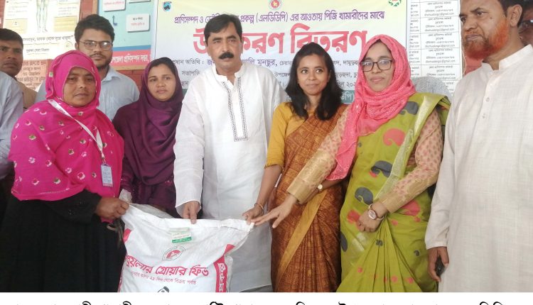দামুড়হুদা অফিস: দামুড়হুদায় ৫৭জন নারী খামারির মাঝে পোল্ট্রি খাবার বিতরণ করা হয়েছে। প্রাণিসম্পদ ও ডেইরী উন্নয়ন প্রকল্পের আওতায় উপজেলার দুইটি ইউনিয়নের মোট ৫৭ জন নারী খামারিকে মাথাপিছু ৫০ কেজি করে পোল্ট্রি খাবার বিতরণ করা হয়। এ উপলক্ষ্যে গতকাল বুধবার বেলা ১২টার দিকে উপজেলা প্রাণিসম্পদ অফিস প্রাঙ্গণে আলোচনাসভা অনুষ্ঠিত হয়। দামুড়হুদা উপজেলা নির্বাহী অফসার রোকসানা মিতার সভাপতিত্বে আলোচনাসভায় প্রধান অতিথি ছিলেন দামুড়হুদা উপজেলা চেয়ারম্যান আলি মুনছুর বাবু। বিশেষ অতিথি ছিলেন উপজেলা মহিলা ভাইস চেয়ারম্যান সাহিদা খাতুন, উপজেলা প্রাণিসম্পদ কর্মকর্তা কৃষিবিদ তাছলিমা, উপজেলা ভেটেরিনারি কর্মকর্তা ডা. নাজমুল হাসান শাওন ও উপজেলা প্রাণিসম্পদ সম্প্রসারণ কর্মকর্তা ডা. রাকিবুল হাসান ও দামুড়হুদা সদর ইউনিয়ন আওয়ামী লীগের সাধারণ সম্পাদক শফিউল কবীর ইউসুফ। অনুষ্ঠানটির সার্বিক সহযোগিতায় ছিলেন অফিস সহকারী শাফায়েতুল ইসলাম।