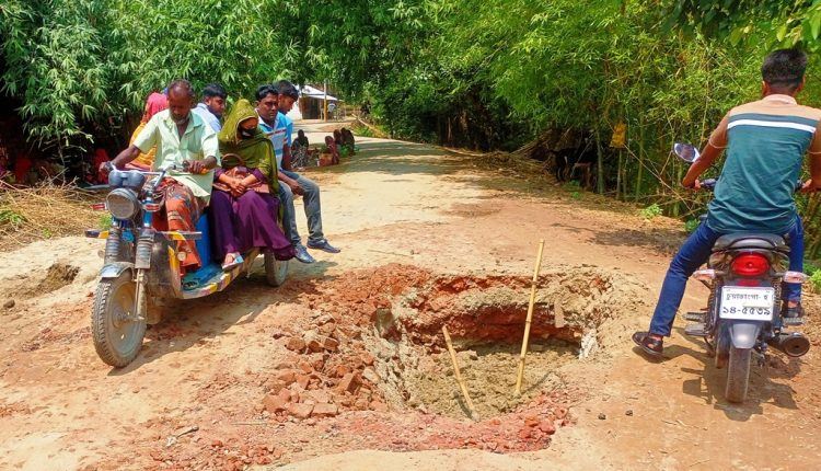 দামুড়হুদা অফিস: দামুড়হুদা উপজেলার পুরাতন বাস্তুপুর থেকে রঘুনাতপুর পর্যন্ত সড়কের বেহাল দশা হয়ে গেছে। সড়কের বিভিন্ন স্থানে পিচ ও খোয়া উঠে খানাখন্দে ভরে গেছে। এরই মধ্যে সম্প্রতি পুরাতন বাস্তুপুর গ্রামের আতিয়ার খার সারের দোকানের সন্নিকটে সড়কের মাঝ বরাবর স্থানে কালভাটের নিকট সড়ক ধসে বিশাল গর্তের সৃষ্টি হয়েছে। ফলে ওই সড়কে চলাচলকারীরা চরম ভোগান্তিতে পড়েছে। ঝুঁকি নিয়ে চলাচল করতে হচ্ছে ছোট বড় যানবাহন গুলোকে। বেশ কয়েক বছর সড়কটির সংস্কার না করায় দুর্ভোগ চরম আকার ধারণ করেছে। বাস্তুপুর গ্রামের স্থানীয় লোকজন জানান, আঞ্চলিক সড়কটি দিয়ে প্রতিদিন শতশত স্কুল কলেজের ছাত্র-ছাত্রীসহ সাধারণ মানুষ দামুড়হুদা হয়ে চুয়াডাঙ্গা ও রঘুনাথপুর হয়ে দর্শনা কার্পাসডাঙ্গা, মুজিবনগর যাতায়াতসহ মালবাহী যানবাহন চলাচল করে থাকে। সড়কটির বিভিন্ন স্থানে খানাখন্দে ভরে যাওয়া ও সম্প্রতি বাস্তুপুর গ্রামের মধ্যে সড়কের মাঝখানে ধসে বড় ধরনের গর্তের সৃস্টি হওয়ায় চলাচলের চরম বিঘœ সৃস্টি হচ্ছে। তারা আরও জানায় ধসে যাওয়া স্থানে একটি কালভাট থাকলেও ওই কালভাট দিয়ে পানি বের হয়না। পানি বের না হওয়ার কারণে পাশ দিয়ে পানি বের হওয়ার কারণে সড়কটি ধসে পড়েছে। এই সড়কে প্রায় সময় ছোট খাটো দুর্ঘটনা ঘটছে। হাউলি ইউনিয়নের সাবেক সদস্য পুরাতন বাস্তুপুর গ্রামের জহির উদ্দীন মেম্বার বলেন, সড়কটি দীর্ঘদিন সংস্কার না হওয়ায় বিভিন্ন স্থানে খানাখন্দে ভরে গেছে। এমনিতেই যাতায়াতের সমস্যা তার পরেও সম্প্রতি রাস্তার মাঝঁখানে ধসে পড়ায় চলাচলের চরম ব্যাঘাত ঘটছে। ধসে পড়ার পাশে রয়েছে একটি কালভাট কিন্তু ওই কালভাটের মুখ উচু থাকায় ওখান দিয়ে পানি বের হতে না পারায় এই অবস্থার সৃস্টি হয়েছে। শুধু এ বছরই নয় প্রতি বছর বর্ষা মরসুমে ওই স্থানে সড়ক ভেঙে নদীতে চলে যায়। দামুড়হুদা উপজেলা প্রকৌশলী আব্দুর রশিদ জানান, সড়কটির প্রায় ৫কিলোমিটারের মধ্যে বিভিন্ন স্থানে ক্ষতিগ্রস্ত হয়েছে। ধসে পড়া স্থানের আপাতত মটি দিয়ে সংস্কার করা হচ্ছে। তাছাড়া এ সড়কটি সংস্কারের জন্য ঊর্ধ্বতন কতৃপক্ষের নিকট প্রায় আড়াই কোটি টাকার ইস্টিমেট পাঠানো হয়েছে। দ্রুত সংস্কারের ব্যবস্থা নেয়া হবে।