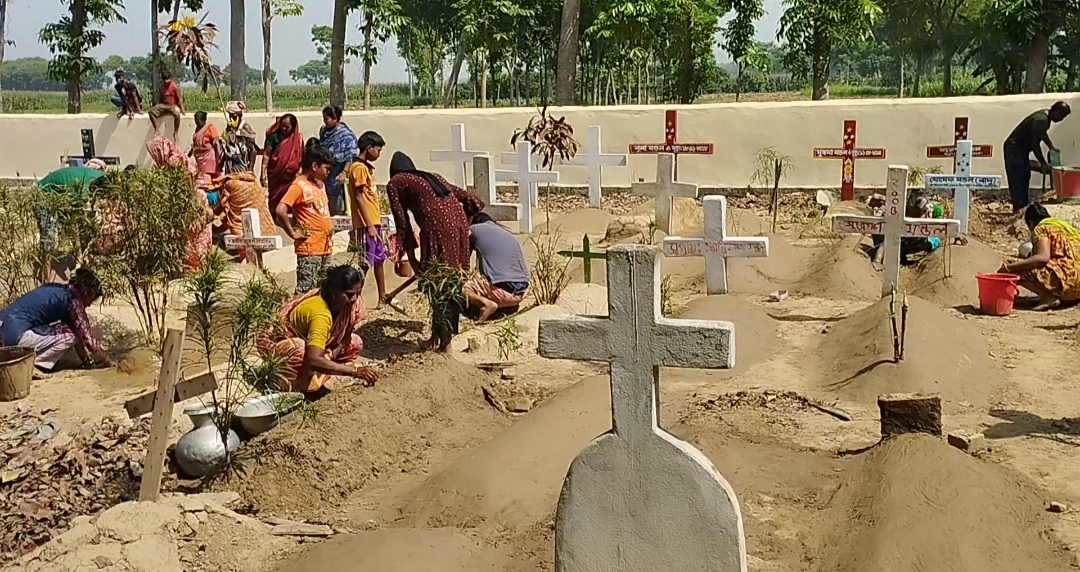 কার্পাসডাঙ্গা প্রতিনিধি: দামুড়হুদা উপজেলার কার্পাসডাঙ্গা ও বাঘাডাঙ্গায় নানা আয়োজনে উদযাপিত হয়েছে খ্রিস্টান ধর্মাবলম্বীদের অন্যতম ধর্মীয় উৎসব পবিত্র ইস্টার সানডে। এ উপলক্ষ্যে গতকাল রোববার সকালে গির্জায় প্রার্থনার আয়োজন করেন যিশুখ্রিস্টের অনুসারীরা। প্রার্থনায় ধর্মীয় ভেদাভেদ ভুলে অসাম্প্রদায়িক বাংলাদেশ গড়ার শপথ নেন তারা। সূর্যোদয়ের পর প্রাতঃকালীন প্রার্থনা ও উপাসনা শুরু হয় গির্জাগুলোতে। যিশুখ্রিস্টের পুনরুত্থান দিবস ইস্টার সানডের অনুষঙ্গ হিসেবে চলে বাইবেল পাঠ, সমবেত সঙ্গীত, বিশেষ সঙ্গীত ও যিশুখ্রিস্টের প্রশংসা আরাধনা।