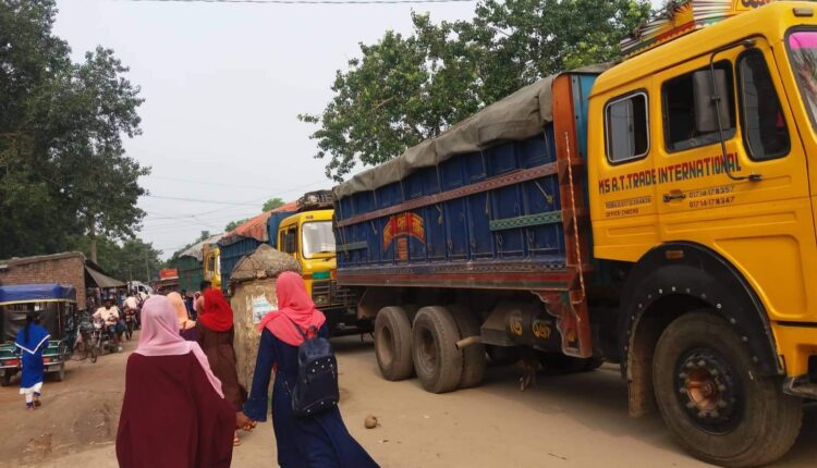 স্টাফ রিপোর্টার: দামুড়হুদা উপজেলার কার্পাসডাঙ্গা ডিগ্রী কলেজ ও মাধ্যমিক বালিকা বিদ্যালয়ের শিক্ষার্থীদের যাতায়াতের একমাত্র সড়ক হচ্ছে কার্পাসডাঙ্গা-বাঘাডাঙ্গার সড়ক। এই সড়কটি দিয়ে প্রতিদিন শিক্ষার্থীসহ দুই গ্রামের প্রায় হাজার হাজার লোক ও যানবাহন যাতায়াত করে। এই রাস্তাটি দুই শিক্ষা প্রতিষ্ঠানের যাতায়াতের একমাত্র মাধ্যম হলেও কয়েকদিন ধরে যানজট লেগেই থাকে। আর এ যানজট সৃষ্টির একমাত্র কারণ দশ চাকার পাথর বোঝাই ট্রাক স্কুলের সামনে রাস্তার ওপরে অবৈধভাবে পাকিং। প্রতিদিন সকাল থেকে দুপুর পর্যন্ত মাধ্যমিক বালিকা বিদ্যালয়ের সামনে পাথর বোঝায় করে নিয়ে এসে এ গাড়িগুলো জড়ো হতে থাকে রাস্তার ওপরে। যার কারণে এ রাস্তা দীর্ঘ সময় ধরে যানজটের সৃষ্টি হচ্ছে। সোমবার সরেজমিনে গিয়ে দেখা যায় বিদ্যালয়ের সামনে অবৈধভাবে পার্কিং ব্যবস্থা করা হয়েছে। আর এ পার্কিং ব্যবস্থার কারণে যানজটের সৃষ্টি হয়েছে। স্কুলের সামনে থেকে ৭ থেকে ৮টি দশ চাকা ট্রাক ব্রিজমোড় পর্যন্ত অতিক্রম করেছে। আর এ যানজটের কারণে এ পথটি অতিক্রম করতে যানবাহনের অনেক সময় লেগে যায়। বিশেষ করে স্কুলের মেয়েরা যাতায়াতে চরম দুর্ভোগ পোহাতে হচ্ছে। আর এ সমস্যার কারণে কর্তৃপক্ষের নেই কোনো উদ্যোগ। কর্তৃপক্ষ মানছে না কোনো নিয়মনীতি। আর এ অনিয়মের কারণে ভোগান্তিতে পড়েছে কলেজ ও স্কুলের শিক্ষার্থীসহ হাজার হাজার মানুষ। এতে ক্ষোভ প্রকাশ করছেন ভুক্তভোগীরা। মাধ্যমিক বালিকা বিদ্যালয়ের শিক্ষক আকলিমা খাতুন জানান, কয়েকদিন ধরে এখানকার যানজট একটি নিয়মে পরিণত হয়েছে। এতো আইন থাকা সত্ত্বেও আইনের তোয়াক্কা না করেই হরহামেশায় তারা অবৈধভাবে গাড়ি পার্কিং করছেন। সড়কের কাজের জন্য স্কুলের পাশে রাখা হচ্ছে পাথর। যার কারণে ১০ চাকা ট্রাকে করে এখানে পাথর আসা নেয়া করছে। আমাদের স্কুলের মেয়েদের যাতায়াতের অনেক অসুবিধা হচ্ছে। তাই এ সমস্যা সমাধানে জরুরী পদক্ষেপ নেয়া উচিত। উপজেলা সহকারী কমিশনার (ভূমি) সুদীপ্ত কুমার সিংহের কাছে জানতে চাইলে তিনি জানান বিষয়টি দেখছি।