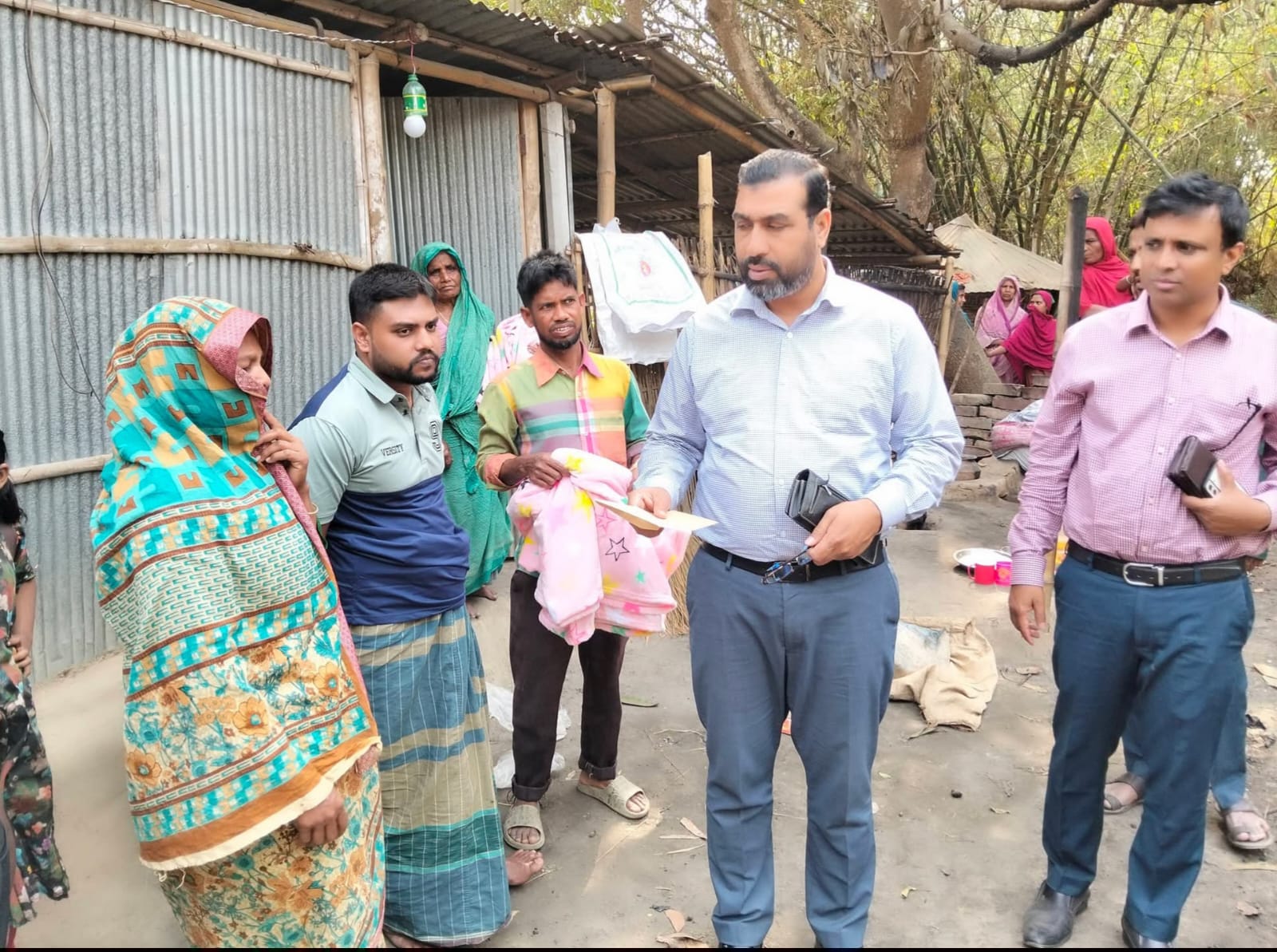 মঙ্গলবার আজ সকালে  অগ্নিকাণ্ডে ক্ষতিগ্রস্ত জিনারুল ইসলামের পরিবারের পাশে দাঁড়িয়ে সরকারি নির্দেশনা মোতাবেক এ সহায়তা প্রদান করা হয়।
