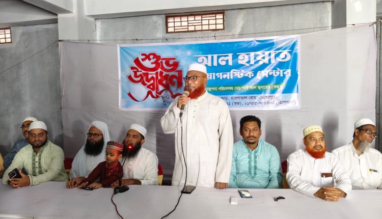 মেহেরপুর অফিস: মেহেরপুর শহরের চক্রপাড়া মোড়ে আনুষ্ঠানিকভাবে উদ্বোধন করা হয়েছে আল হায়াত ডায়াগনস্টিক সেন্টার। গতকাল শুক্রবার বিকেলে কোরআন তেলাওয়াত ও মোনাজাতের মাধ্যমে এ উদ্বোধন অনুষ্ঠিত হয়। উদ্বোধনী অনুষ্ঠানে প্রধান অতিথি ছিলেন মেহেরপুর জেলা জামায়াতের আমির মাওলানা তাজউদ্দীন খান। বিশেষ অতিথি ছিলেন জেলা সেক্রেটারি ইকবাল হুসাইন ও সদর উপজেলা আমির মাওলানা সোহেল রানা। ডায়াগনস্টিক সেন্টারটির ব্যবস্থাপনা পরিচালক সাবি আল জুবায়ের শুভ জানান, আধুনিক যন্ত্রপাতি ও মানসম্মত সেবা প্রদানের মাধ্যমে এই সেন্টারটি স্বাস্থ্যসেবায় গুরুত্বপূর্ণ ভূমিকা রাখবে বলে তিনি আশাবাদ ব্যক্ত করেন। অনুষ্ঠানে আরও উপস্থিত ছিলেন স্থানীয় গণ্যমান্য ব্যক্তিবর্গ ও বিভিন্ন শ্রেণি-পেশার মানুষ।