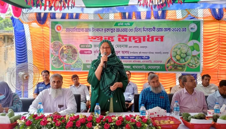 মেহেরপুরে তিনদিন ব্যাপী আম মেলা উদ্বোধন জেলা প্রশাসক সিফাত মেহনাজ আম বিদশে রপ্তানি বাড়াতে কাজ করছে জেলা প্রশাসন ও কৃষি বিভাগ