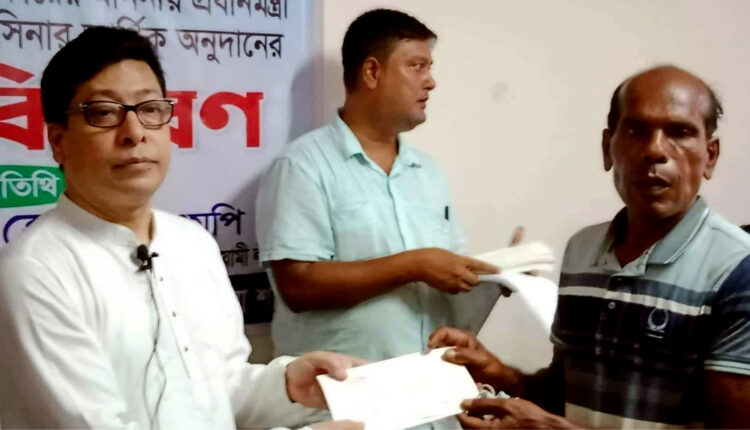 মেহেরপুর অফিস: মেহেরপুরে প্রধানমন্ত্রী শেখ হাসিনার আর্থিক অনুদানের চেক বিতরণ করা হয়েছে। গতকাল শনিবার দুপুরের দিকে জনপ্রশাসন প্রতিমন্ত্রী ফরহাদ হোসেন এমপি তার নিজ বাসভবনে প্রধানমন্ত্রীর আর্থিক অনুদানের চেক বিতরণ করেন। জনপ্রশাসন প্রতিমন্ত্রী ফরহাদ হোসেন এমপি উপস্থিত থেকে ৩৩ জনের মাঝে ১৪ লাখ ৬০ হাজার টাকার আর্থিক অনুদানের চেক বিতরণ করেন। জেলা যুবলীগের যুগ্ম-আহবায়ক শহীদ সরফরাজ হোসেন মৃদুল, সাবেক সাংগঠনিক সম্পাদক মিজানুর রহমান হিরন, কলেজ ছাত্রলীগের সাধারণ সম্পাদক কুতুব উদ্দিন প্রমুখ এ সময় সেখানে উপস্থিত ছিলেন।