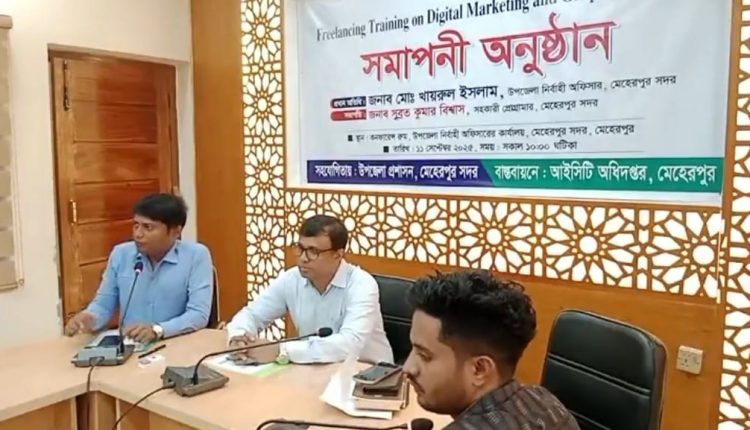 আমঝুপি প্রতিনিধি:মেহেরপুর সদর উপজেলা প্রশাসনের উদ্যোগে এবং আইসিটি দপ্তরের সহযোগিতায় আয়োজিত ফ্রিল্যান্সিং প্রশিক্ষণ শেষে প্রশিক্ষণার্থীদের মধ্যে সনদপত্র বিতরণ করা হয়েছে। বৃহস্পতিবার সকালে উপজেলা পরিষদ হল রুমে অনুষ্ঠিত সমাপনী অনুষ্ঠানে সভাপতিত্ব করেন সরকারি প্রোগ্রামার সুব্রত কুমার বিশ্বাস।