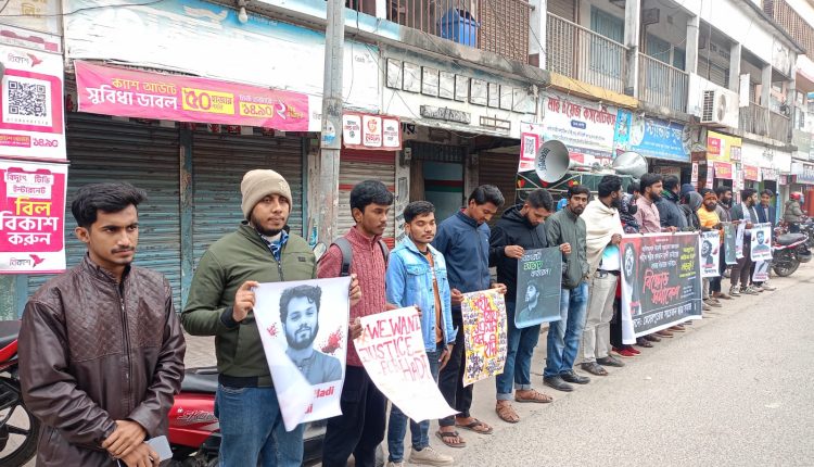 সমাবেশে অংশগ্রহণকারীরা বিভিন্ন প্ল্যাকার্ড ও স্লোগানের মাধ্যমে হাদী হত্যার বিচার এবং নিরাপদ সমাজ গঠনের দাবি জানান।