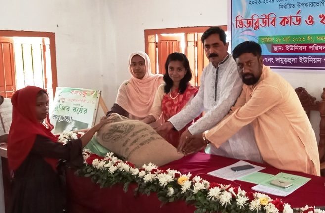 দামুড়হুদার ইউনিয়নে ভিডব্লিউবি’র পুষ্টি চাল বিতরণকালে উপজেলা চেয়ারম্যান বাবু