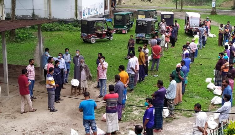 আলমডাঙ্গা ব্যুরো: সামাজিক দূরত্ব বজায় রেখেই আলমডাঙ্গায় ইজিবাইক চালকদের খাদ্য বিতরণ করেছে। ১ মে শুক্রবার বেলা ১০টায় উপজেলার চত্তরে উপজেলা প্রশাসনের উদ্যোগে খাদ্য সামগ্রী বিতরণ করা হয়। করোনা ভাইরাস মোকাবেলায় শহরের নিত্য প্রয়োজনীয় জিনিসপত্র ও ওষুদের দোকান ছাড়া সমস্ত দোকানপাঠ ও গাড়ি বন্ধ রয়েছে। শহরের আশপাশ এলাকায় প্রায় ১শ জন ইজিবাইক চালকরা তাদের গাড়ি না চালিয়ে বাড়িতে বসে আসে। সেই কারণে তাদেরকে এই খাদ্য সামগ্রী বিতরণ করা হয়েছে। খাদ্য সামগ্রী বিতরণকালে উপস্থিত ছিলেন আলমডাঙ্গা পৌর মেয়র উপজেলা আওয়ামীলীগের সভাপতি হাসান কাদির গনু, উপজেলা নির্বাহী অফিসার মোঃ লিটন আলী, উপজেলা ভাইস চেয়ারম্যান অ্যাড. সালমুন আহমেদ ডন, পৌর আওয়ামীলীগের সাধারন সম্পাদক কাউন্সিলর মতিয়ার রহমান ফারুক, কাউন্সিলর জাহিদুল ইসলাম, উপজেলা প্রকল্প বাস্তবায়ন কর্মকর্তা এনামুল হক , উপজেলা প্রকল্প বাস্তবায়ন অফিসের উপসহকারী প্রকৌশলী নজরুল ইসলাম, আওয়ামীলীগ নেতা মিজানুর রহমান রিপন, শরিফুল ইসলাম সাকা প্রমুখ।