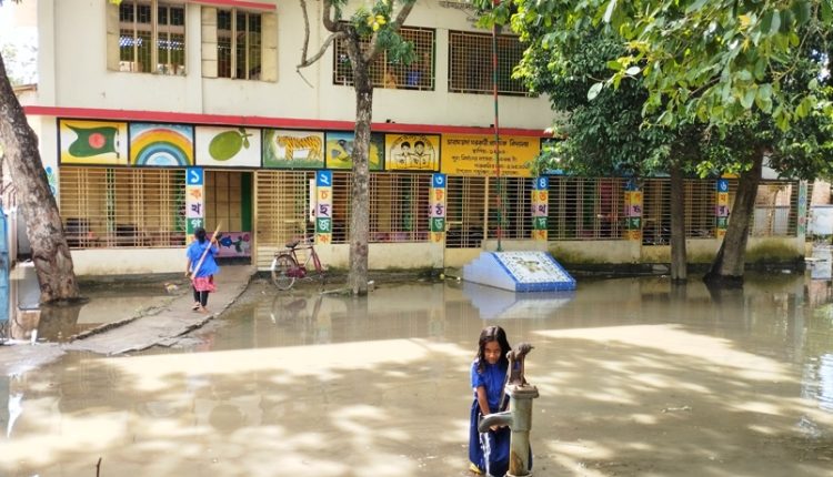 কার্পাসডাঙ্গা প্রতিনিধি : দামুড়হুদা উপজেলার কার্পাসডাঙ্গা ইউনিয়নের আরামডাঙ্গা সরকারি প্রাথমিক বিদ্যালয়ের ভিতর ও যাতায়াতের একমাত্র রাস্তাটি পানিবন্দি থাকে। যার কারনে ভোগান্তিতে পড়ে শিক্ষার্থী-শিক্ষকরা। এর নেতিবাচক প্রভাব পড়ে শিক্ষা কার্যক্রমেও। সরেজমিনে ঘুরে দেখা গেছে বিদ্যালয়ের ভিতর পানিবন্দি। শিক্ষার্থীকে পানি ডিঙ্গিয়ে হাঁটাচলা করতে দেখা গেছে। ভেজা শরীর নিয়ে ক্লাস করছে তারা। দিনের পর দিন এভাবে ভিজে তারা স্কুলে যাতায়াত করে। অনেক শিক্ষার্থী এই পরিবেশে স্কুলে আসতে ভয় পায়। ফলে শিক্ষা কার্যক্রমে নেতিবাচক প্রভাব পড়ে। প্রতিষ্ঠানের শিক্ষক বিল্লাল হোসেন জানান আরামডাঙ্গার একমাত্র স্কুলের রাস্তাটি দীর্ঘদিনের সমস্যা। বৃষ্টি হলেই রাস্তার উপরে জলাবদ্ধতার কারণে গ্রামের সাধারন মানুষসহ বিদ্যালয়ের শিক্ষার্থীরা চরম দূর্ভোগের শিকার হয়। অতিবৃষ্টির সময়ে বিদ্যালয়টি পুকুরে পরিনত হয়। বিদ্যালয়ের প্রধান শিক্ষক জানান, আমাদের বিদ্যালয়ে বৃষ্টির সময় অনেক দিন ধরে পানিবন্দি হয়ে থাকে। পানি নিস্কাশনের কোন ব্যবস্থা না থাকায় কোমলমতি শিক্ষার্থীদের যাতায়াতে সমস্যার সম্মুখিন হচ্ছে। এ সময় তারা পানি ডিঙ্গিয়ে স্কুলে আসে। পোষাক ভিজে যায় তাদের। স্কুলের শিক্ষার্থীরাসহ মহল্লাবাসি ভোগান্তিতে পড়ে। এখানে পানি নিস্কাশনের বিষয়টি হচ্ছে প্রধান। বিষয়টি সমাধানের জন্য উর্ধতণ কর্তৃপক্ষের সুদৃষ্টি কামনা করছি।