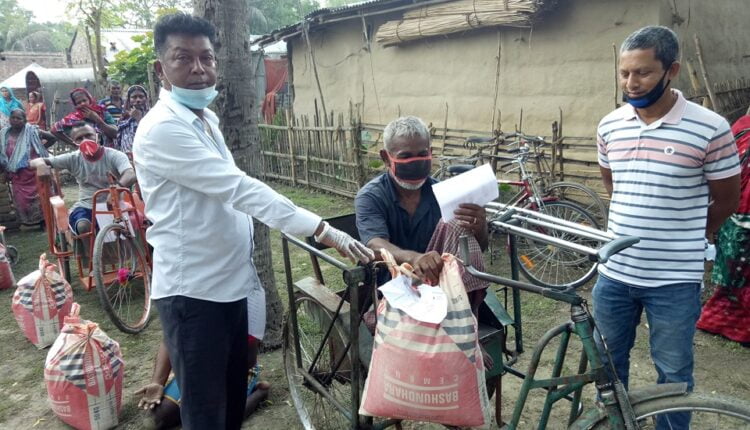 মুজিবনগর প্রতিনিধি: সাম্প্রতিক সময়ে করোনা ভাইরাসের প্রভাবে প্রতিবন্ধী ব্যক্তিরা অনেক ঝুঁকির মধ্যে রয়েছে। অনেক প্রতিবন্ধী ব্যক্তি অর্ধাহারে-অনাহারে দিন কাটাচ্ছে। এরই প্রেক্ষিতে অ্যাকসেস বাংলাদেশ ফাউন্ডেশন এবং বাংলাদেশ বিসনেস এন্ড ডিজএবিলিটি নেটওয়ার্ক (বিবিডিএন)’র আর্থিক সহযোগিতায় মেহেরপুরের মুজিবনগর উপজেলায় গতকাল শনিবার সকালে ৪১টি দরিদ্র ও কর্মহীন প্রতিবন্ধী ব্যক্তির পরিবারের (১৬৪ জন ব্যক্তি) মাঝে খাদ্য সহায়তা প্রদান করা হয়। খাদ্য সহায়তার মধ্যে ছিলো পরিবার প্রতি ১৫ কেজি চাল, ২ কেজি ডাল, ২ কেজি আলু, ১ কেজি তেল, ৫শ’ গ্রাম লবণ ও ২টি সাবান। ওই খাদ্য সামগ্রী বিতরণ করেন সংস্থাটির প্রতিনিধি মো. জসিম উদ্দিন ও স্থানীয় ইউপি সদস্য মি. শংকর বিশ্বাস প্রমুখ উপস্থিত ছিলেন।
