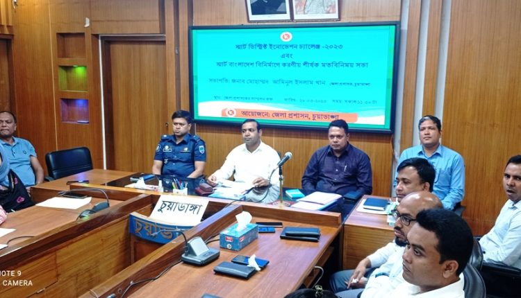 স্টাফ রিপোর্টার: স্মার্ট ডিস্ট্রিক্ট ইনোভেশন চ্যালেঞ্জ-২০২৩ এবং স্মার্ট বাংলাদেশ বিনির্মাণে করণীয় শীর্ষক মতমিনিময় সভায় চুয়াডাঙ্গা জেলা প্রশাসক মোহাম্মদ আমিনুল ইসলাম খান বলেছেন, অপার সম্ভাবনার জেলা চুয়াডাঙ্গা। এ জেলাকে দেশের স্মার্ট জেলায় উন্নীত করার যথেষ্ট সুযোগ রয়েছে।