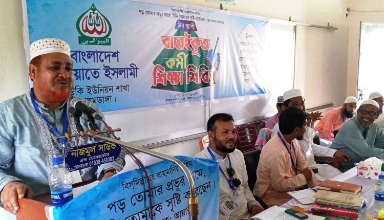 আলমডাঙ্গা ব্যুরো: বাংলাদেশ জামায়াতে ইসলামী ডাউকি ইউনিয়ন শাখার আয়োজনে দিনব্যাপী বাছাইকৃত কর্মি শিক্ষা শিবির অনুষ্ঠিত হয়েছে। গতকাল শনিবার বাদেসাজু বাদল স্মৃতি একাডেমি মাধ্যমিক বিদ্যালয়ে দিনব্যাপী কর্মি শিক্ষা শিবির অনুষ্ঠিত হয়। ডাউকি ইউনিয়ন জামায়াতের আমির সাজিবুর রহমানের সভাপতিত্বে প্রধান অতিথি ছিলেন বাংলাদেশ জামায়াতে ইসলামী চুয়াডাঙ্গা জেলা শাখার আমির কেন্দ্রীয় মজলিসে শূরার অন্যতম সদস্য চুয়াডাঙ্গা -২ আসনের জামায়াত মনোনীত সংসদ সদস্য পদপ্রার্থী রুহুল আমিন। বিশেষ অতিথি ছিলেন চুয়াডাঙ্গা জেলা শাখার সহকারী সেক্রেটারি ও চুয়াডাঙ্গা -১ আসনে জামায়াত মনোনীত সংসদ সদস্য পদপ্রার্থী অ্যাড. মাসুদ পারভেজ রাসেল, জেলা শাখার কর্মপরিষদ সদস্য আলতাফ হোসাইন, জেলা আইন আদালত বিষয়ক সম্পাদক দারুসসালাম, জেলা যুব বিভাগের সভাপতি শেখ নূর মোহাম্মদ হুসাইন টিপু, উপজেলা আমির প্রভাষক শফিউল আলম বকুল, সেক্রেটারি মামুন রেজ, সহকারী সেক্রেটারি বেলাল হুসাইন। অনুষ্ঠানের শুরুতে দারসুল কোরআন পেশ করেন বদরগঞ্জ বাকী বিল্লাহ কামিল মাদরাসার প্রিন্সিপাল ড. মো. রুহুল আমিন। ইউনিয়ন জামায়াতের সেক্রেটারি ডা: আব্দুস সালামের উপস্থাপনায় অনুষ্ঠানে উদ্বোধনী বক্তব্য দেন ডাউকি ইউনিয়ন শাখার সহকারী সেক্রেটারি ও টি সির পরিচালক আলাউদ্দিন। উপন্থিত ছিলেন ইউনিয়ন সহকারী সেক্রেটারি শরিফুল ইসলাম, ডাউকি ইউনিয়ন শাখার কর্মপরিষদ সদস্য শরিফুল ইসলাম, বদরুদ্দীন মেম্বার, আনিছুর রহমান মেম্বার, বাদল রশিদ, মুন্সি বায়েজিদ হোসেন, সাইদুর রহমান, মেহেদী হাসান সলক, আব্বাস উদ্দিন, রাসেল। প্রধান অতিথি বলেন, জামায়াত কর্মী মানেই সমাজ কর্মী, কর্মীদের কাঙ্খিত মানে পৌঁছাতে হলে ব্যক্তিগত অধ্যয়ন ও দায়ী ইলাল্লার ভূমিকা পালন করতে হবে।
