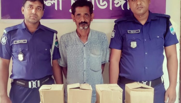আলমডাঙ্গা ব্যুরো: আলমডাঙ্গার পারলক্ষ্মীপুর গ্রাম থেকে অজিত হালদার নামের এক মাদক কারবারীকে প্রেফতার করেছে পুলিশ। গতকাল শুক্রবার সকালের দিকে ঘোলদাড়ী ফাঁড়ি পুলিশ অভিযান চালিয়ে তাকে গ্রেফতার করে। এ সময় তার কাছ থেকে মাদক হিসেবে ব্যবহৃত ৯৬ বোতল হোমিও প্যাথিক অ্যালকোহল উদ্ধার করা হয়। গ্রেফতারকৃত আজিত হালদার (৫৭) উপজেলার পরলক্ষ্মীপুর ঘোষপাড়ার মৃত যতীন হালদারের ছেলে।